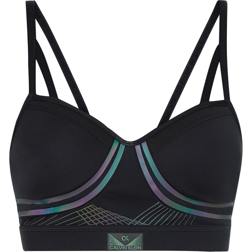 Calvin klein - wo - medium support sports bra , xs , ck black / rainbow reflective , style 00gwf1k100