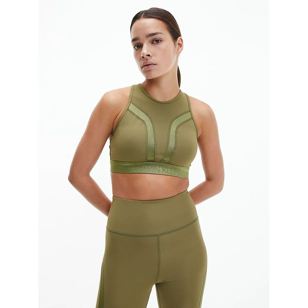 Calvin klein - wo - medium support sports bra , s , capulet olive , style 00gwh1k104
