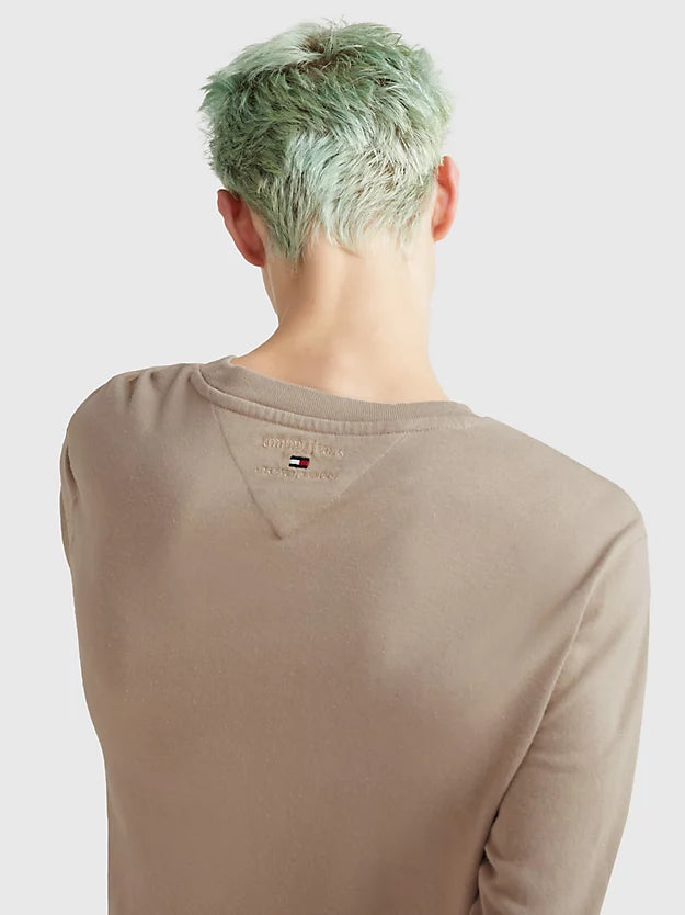 Tommy hilfiger jeans - tjcu ovs graphic cropped tee , s , medium taupe , style dm0dm15457