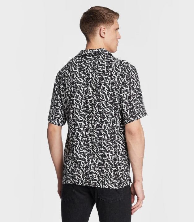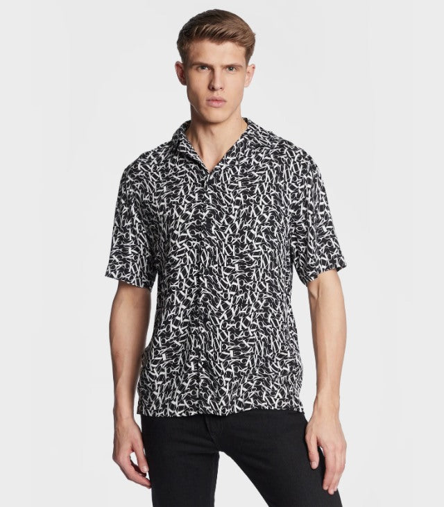 Calvin klein - resort shirt-print , s , ck one warped monogram black aop , style km0km00854