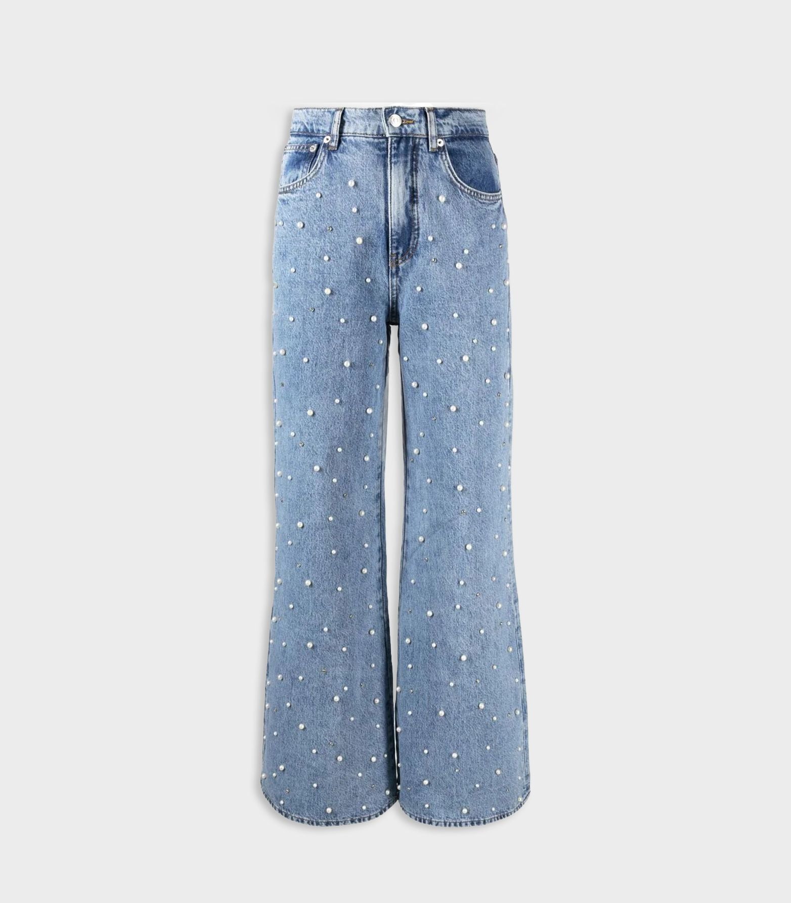 • Maje - Faux Pearl-Embellished Wide-Leg Jeans
