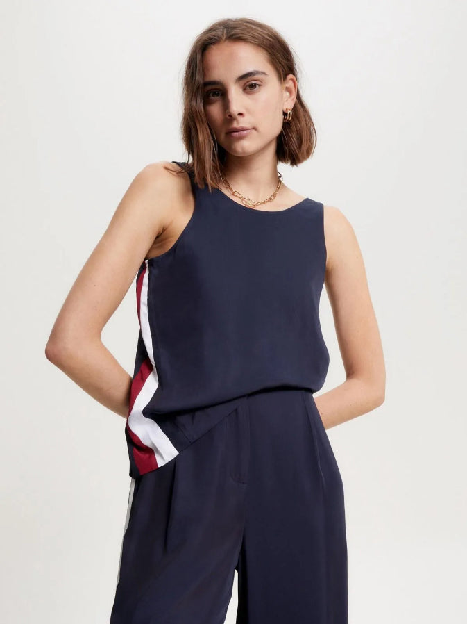 Tommy Hilfiger - Women's Logo Tape Detail Sleeveless Top Regular Fit