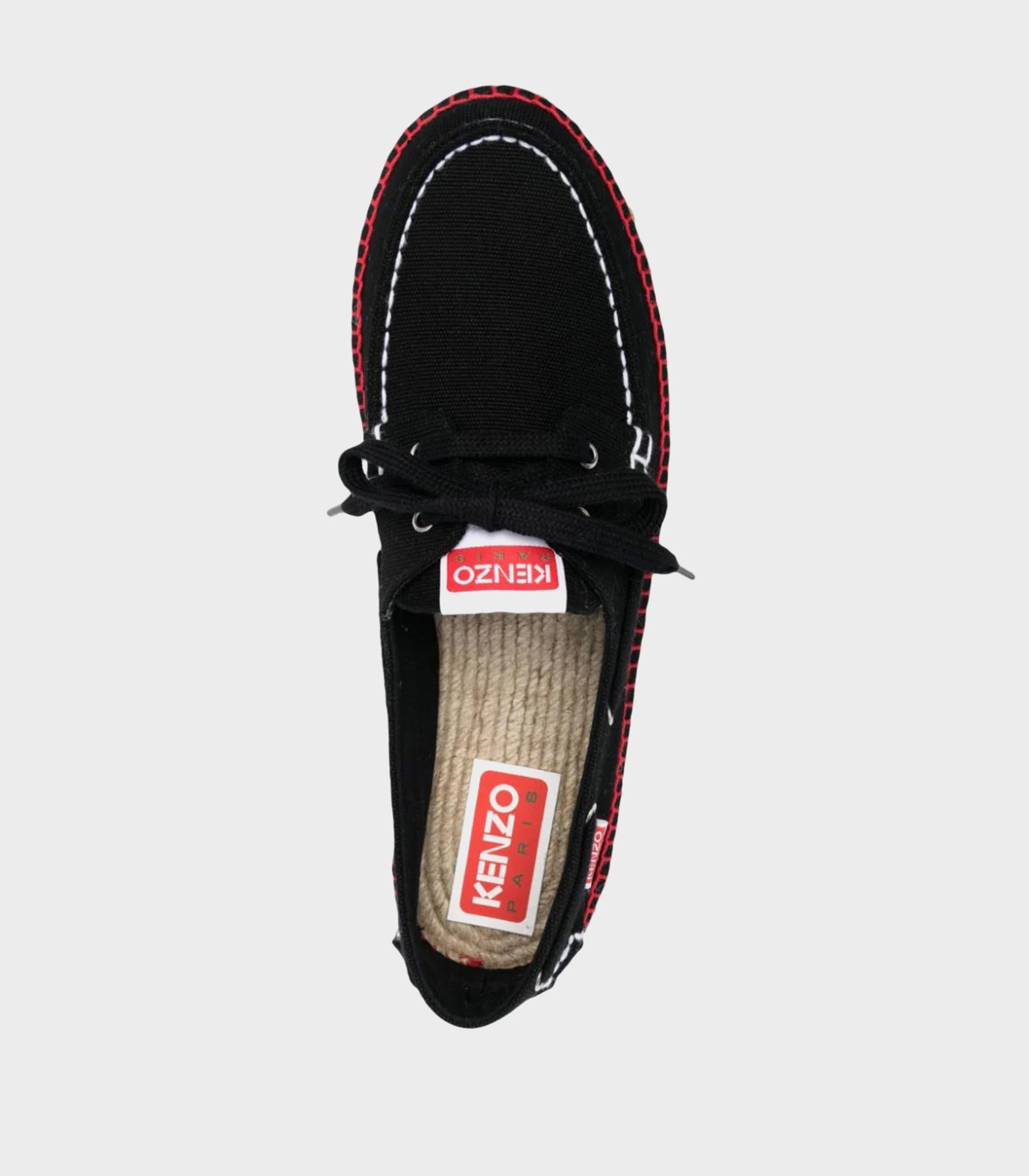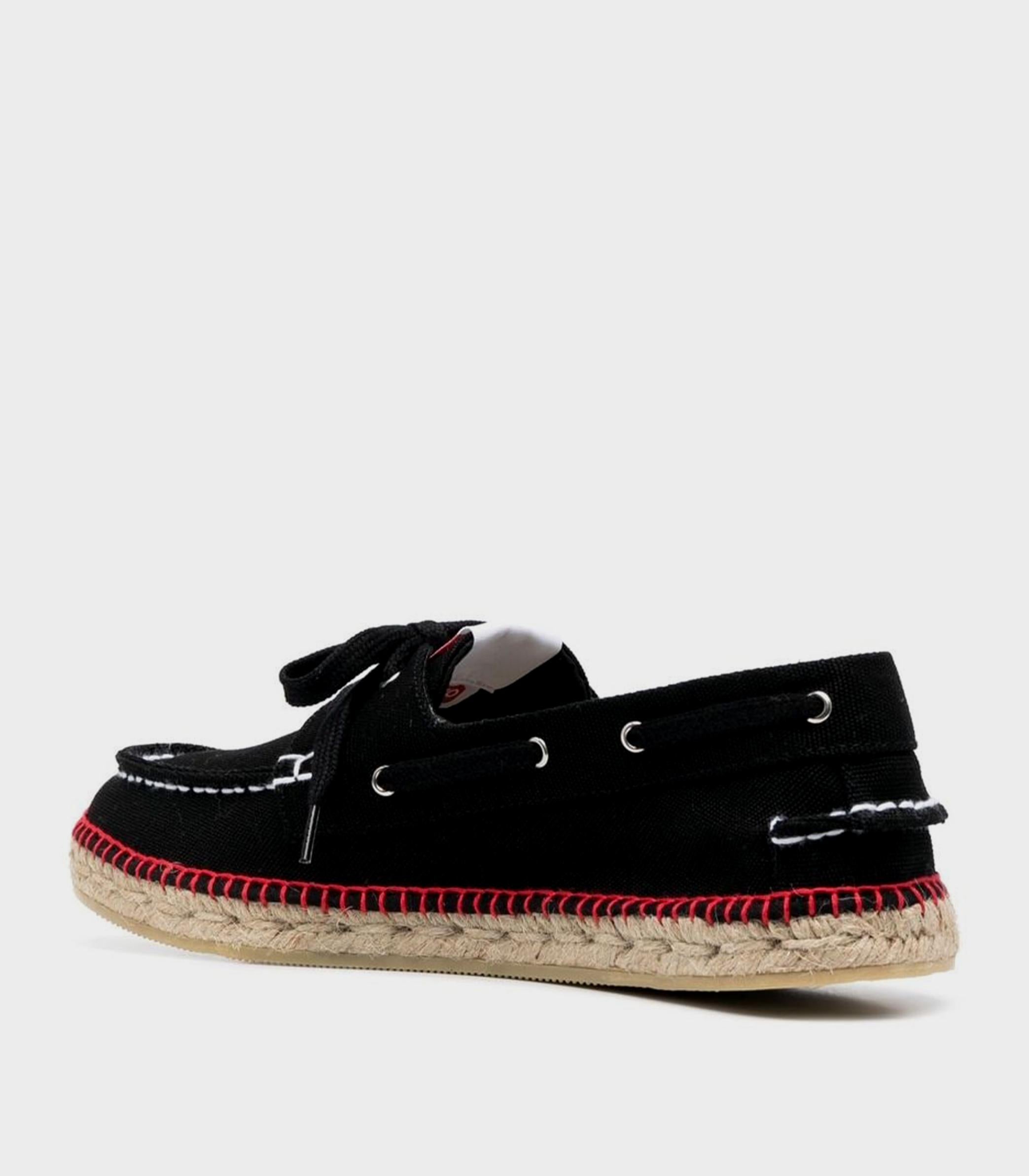 • Crafted in Spain from organic cotton canvas, these shoes combine espadrilles with classic boat shoes, featuring a jute sole, contrasting knit upper, flat laces, and the iconic red label on the tongue and side.