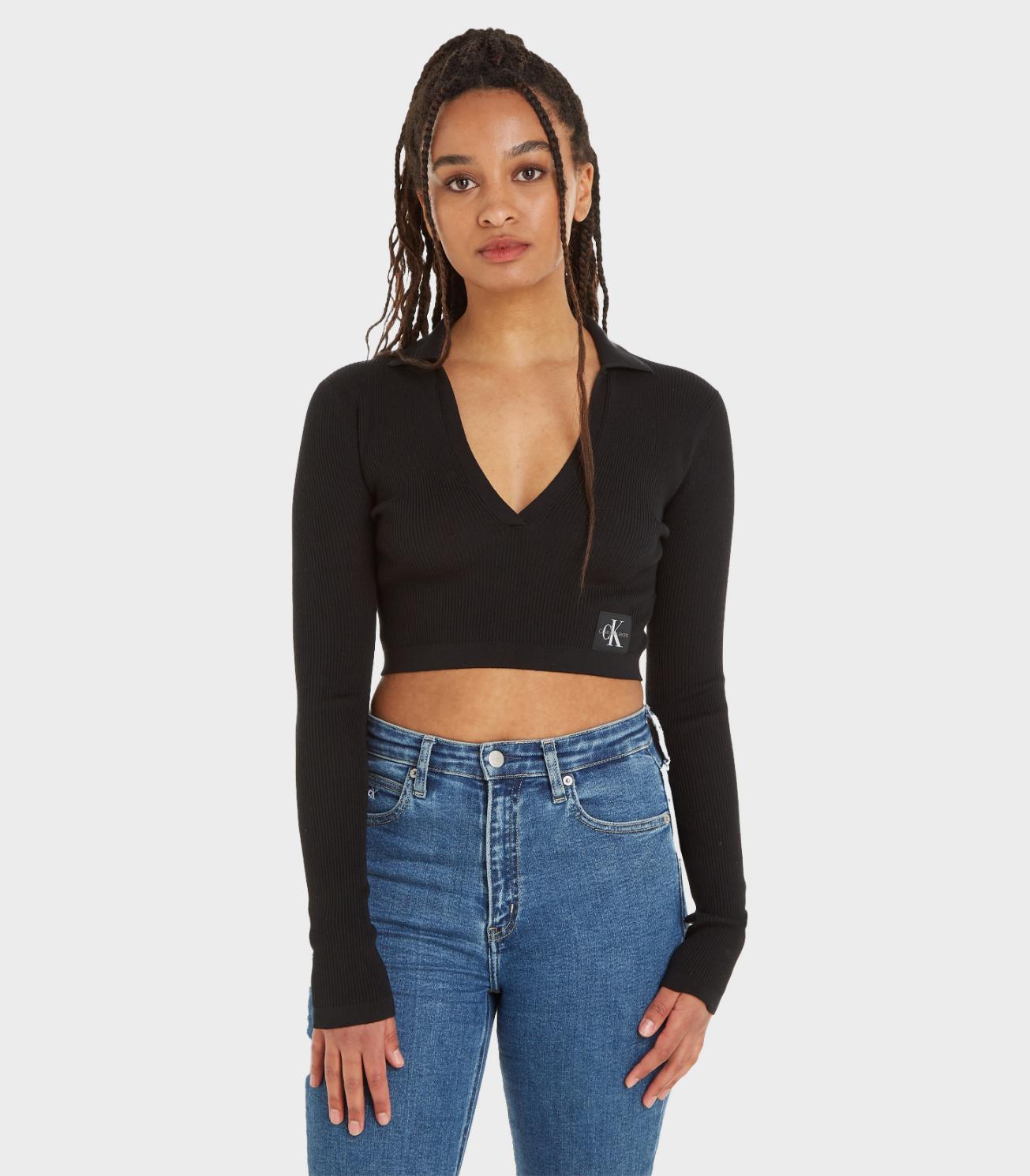 • Calvin Klein Jeans - Label Tight Crop V - Neck Sweater