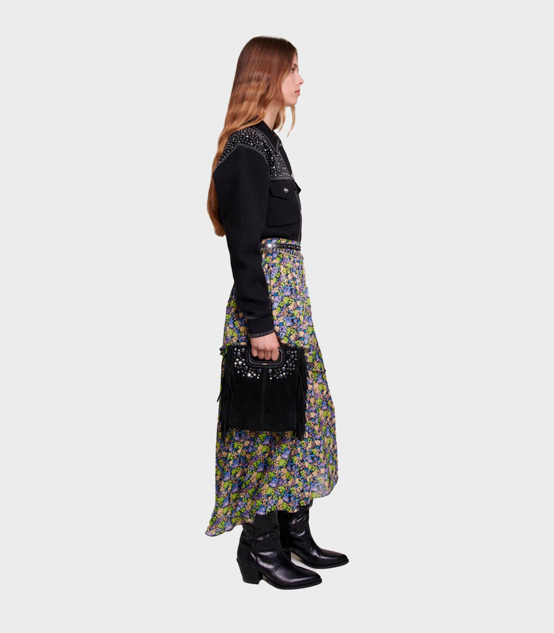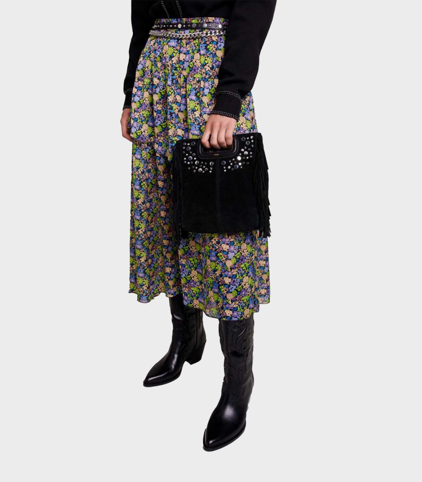 • This skirt is an ode to British style, mixed with a hint of preppy romanticism. Maje has created elegant, timeless pieces in autumnal hues to complete your seasonal looks in style.