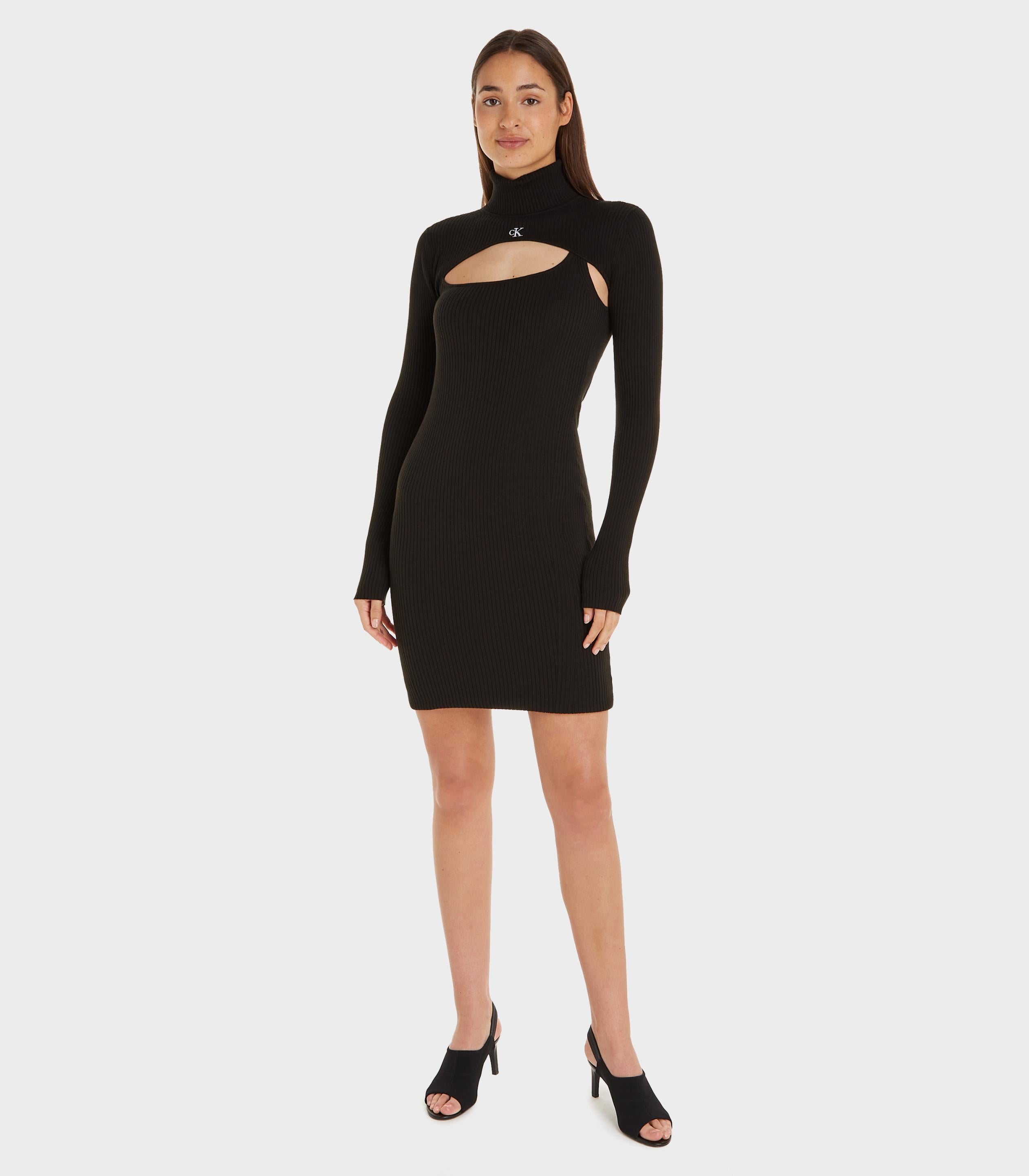 Calvin klein jeans - 2 in 1 tight ls sweater dress , xs , ck black , style j20j222515