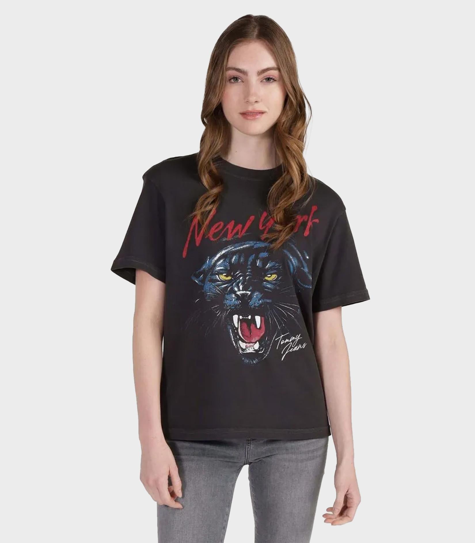 Tommy hilfiger jeans - tjw rlx washed panther tee , s , black , style dw0dw17371