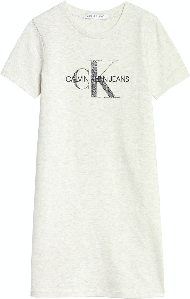 Calvin klein - reptile monogram t-shirt dress , 8 , white heather , style ig0ig01204