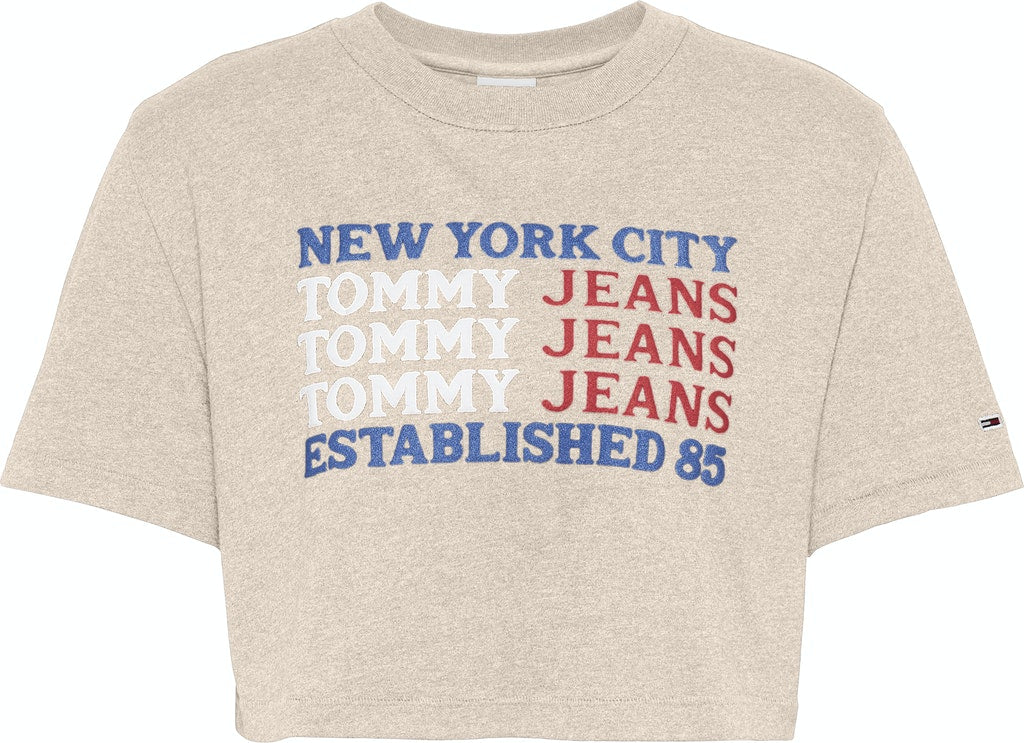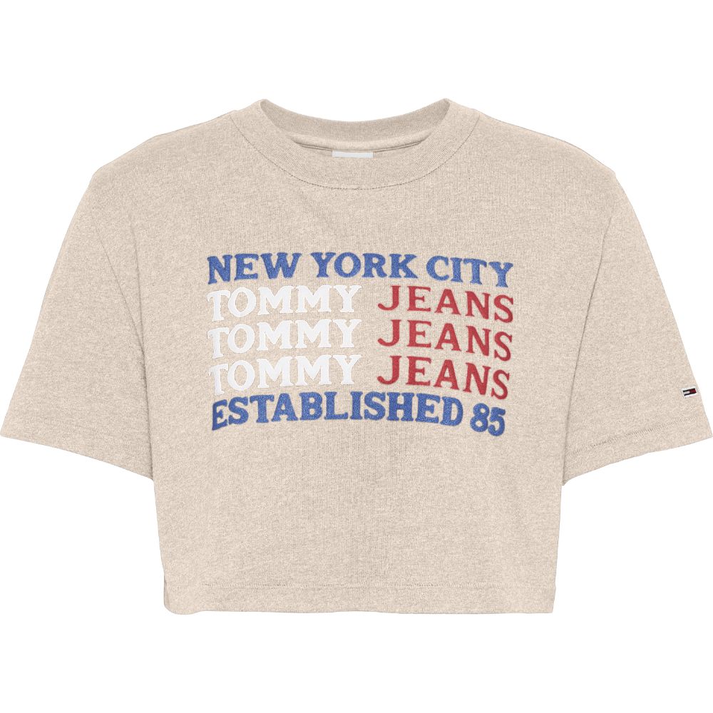 Tommy hilfiger jeans - tjw super crop flag repeat tee , xs , smooth stone , style dw0dw10410