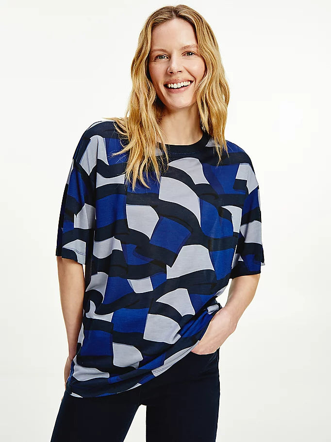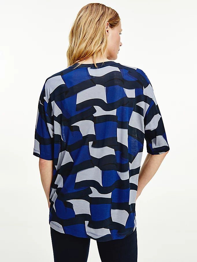 Tommy hilfiger - icon relaxed graphic c-nk top ss , xs , motion flag small / desert sky , style ww0ww31151