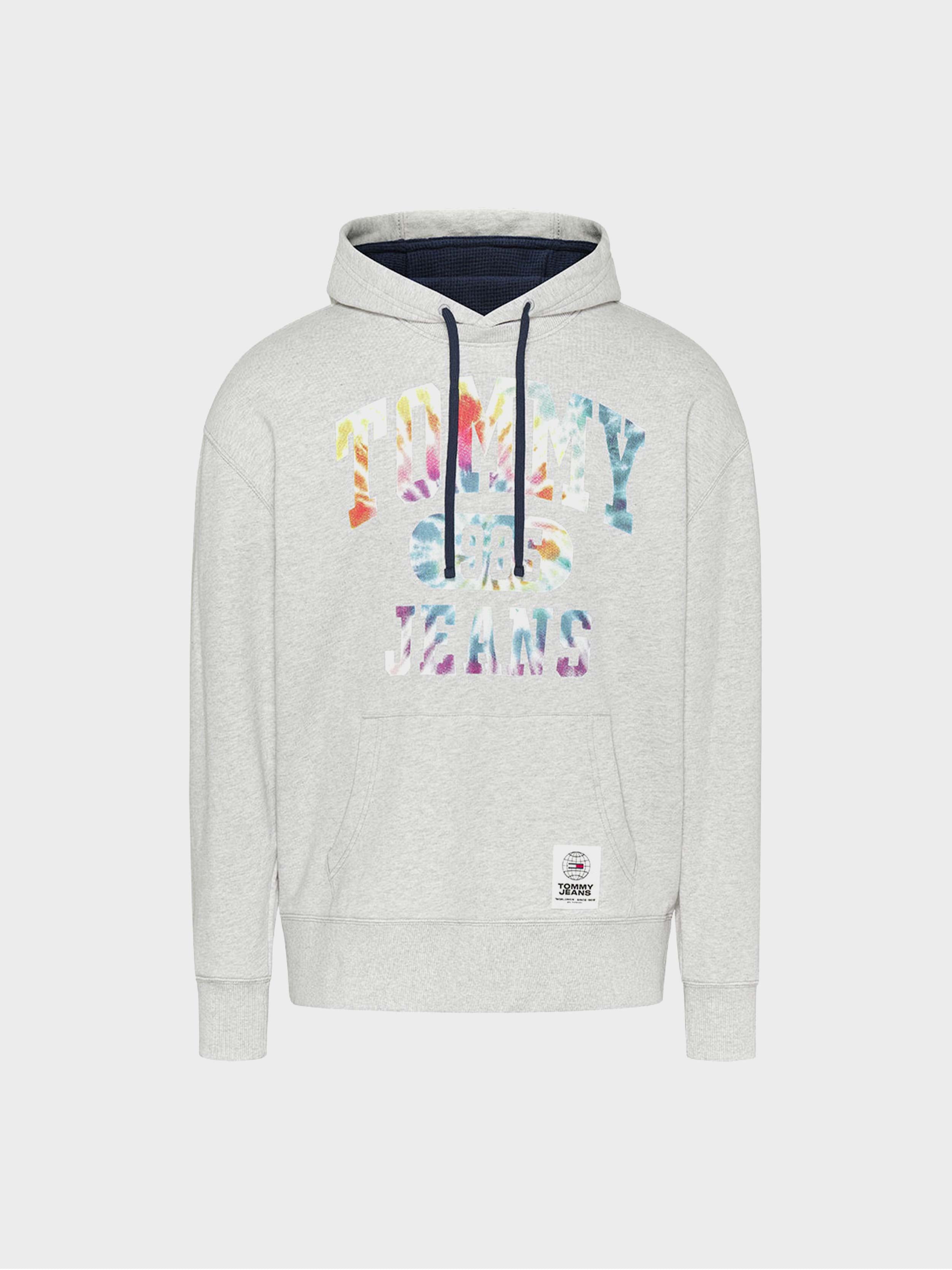 Tommy hilfiger jeans - tjm college tie dye hoodie , xs , silver grey htr , style dm0dm12350