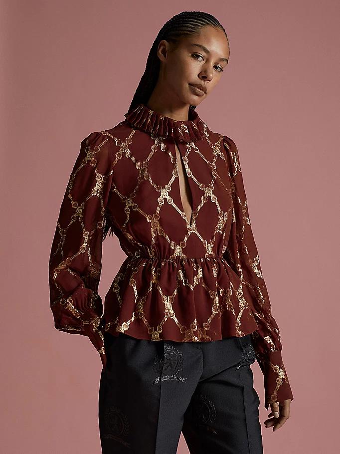 • Tommy Hilfiger - Crest Silk Peplum Blouse Regular Fit