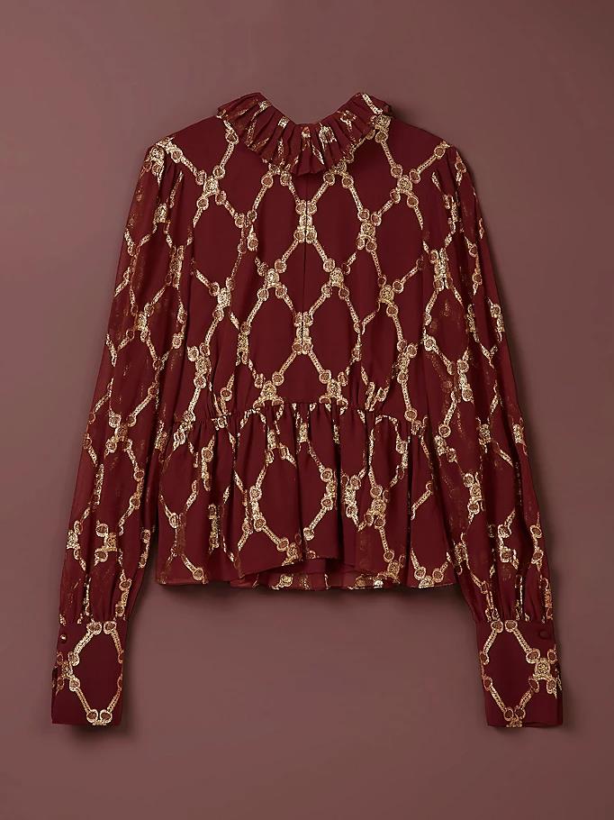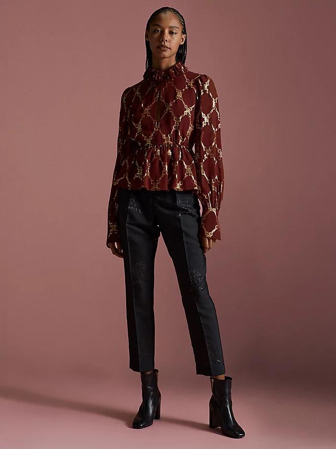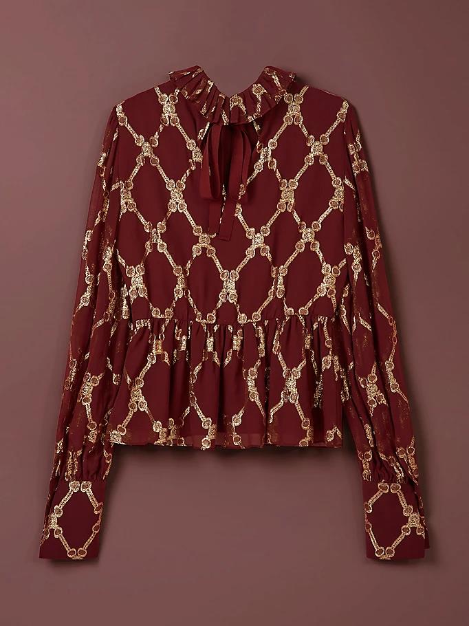 Tommy hilfiger - thl festive crest peplum blouse , 42 , rouge , style ww0ww32813
