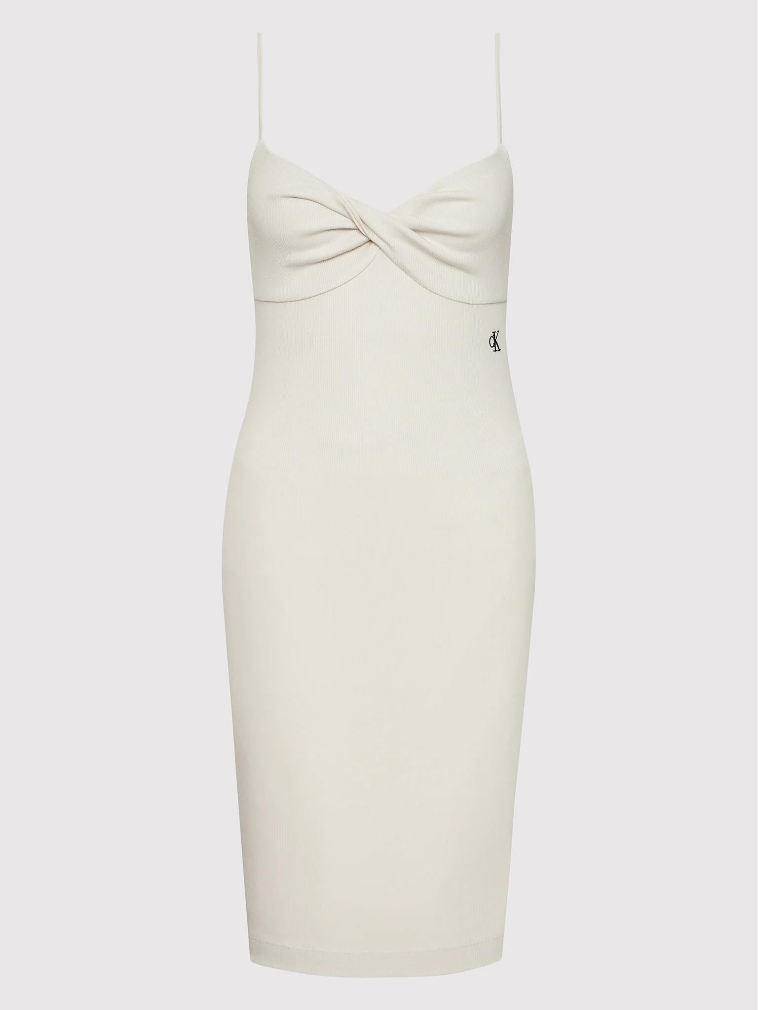 Calvin klein jeans - strappy twisted rib dress , xs , eggshell , style j20j218402