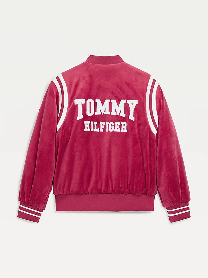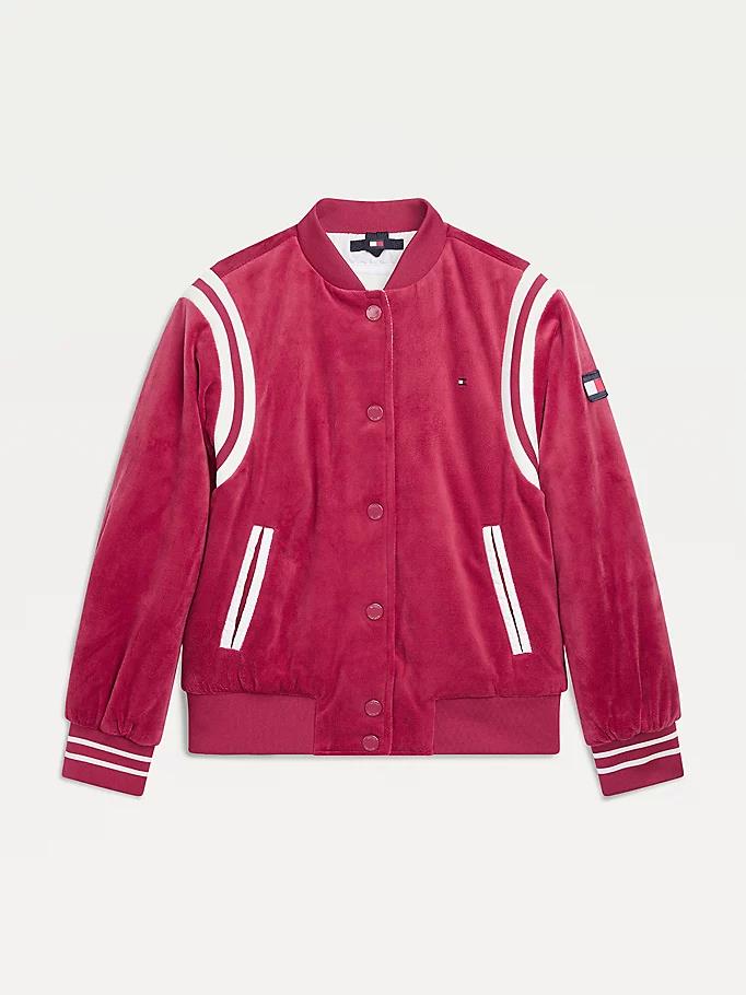 Tommy hilfiger - varsity bomber jacket , 10 , cranberry crush , style kg0kg06285