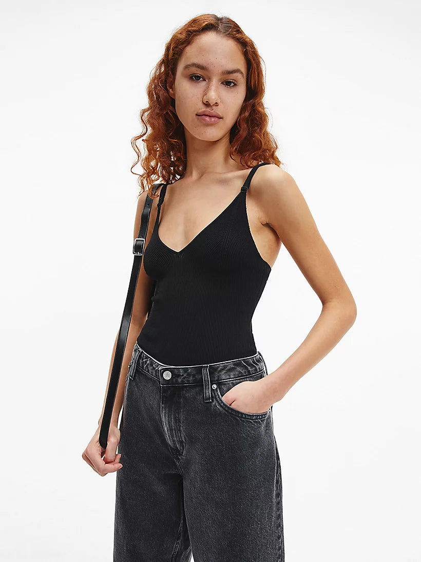 Calvin klein jeans - badge knitted strappy body , xs , ck black , style j20j218182