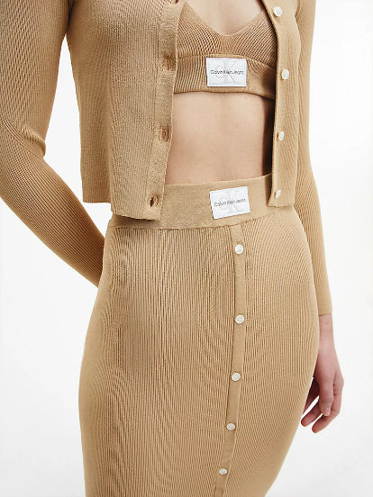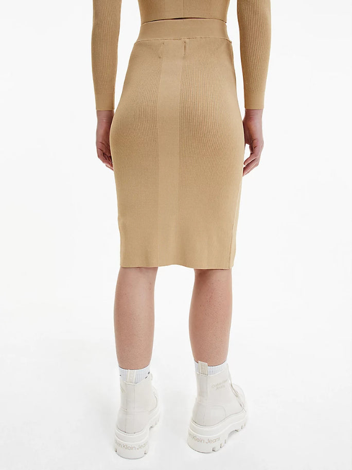 Calvin klein jeans - badge knitted skirt , m , tawny sand , style j20j218714