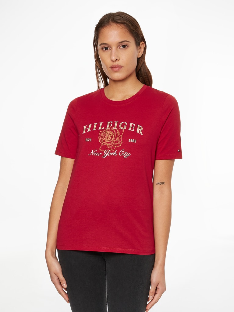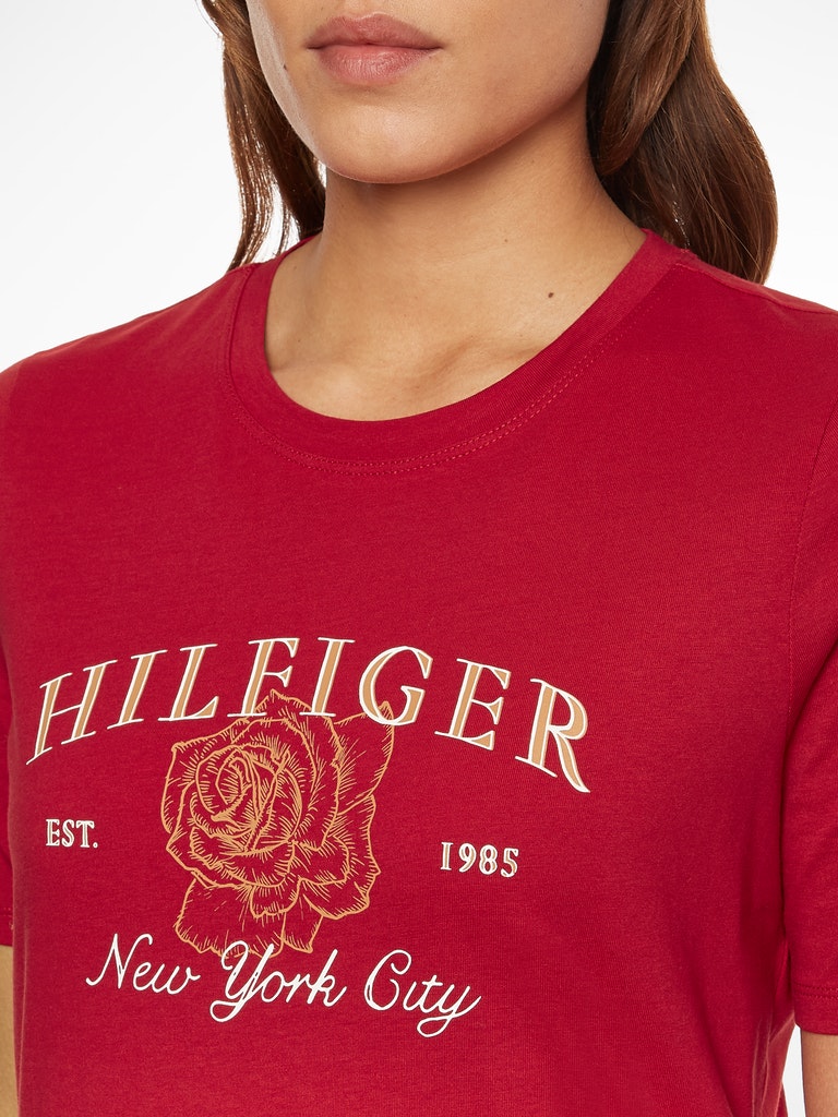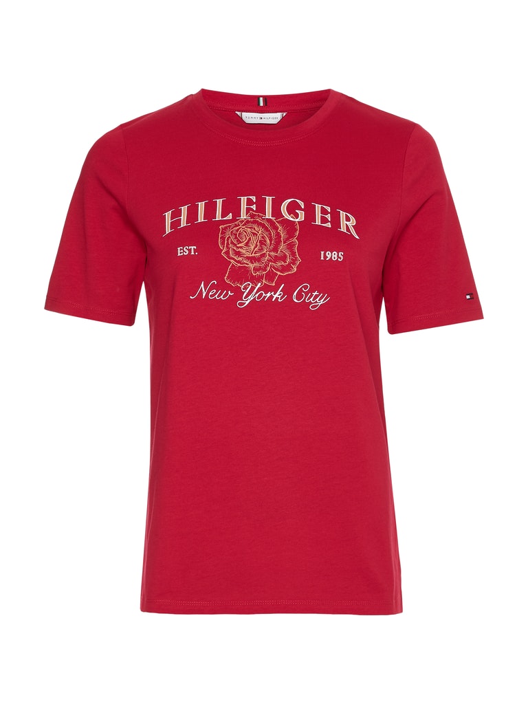 Tommy hilfiger - regular rose print c-nk top ss , xs , royal berry , style ww0ww34680