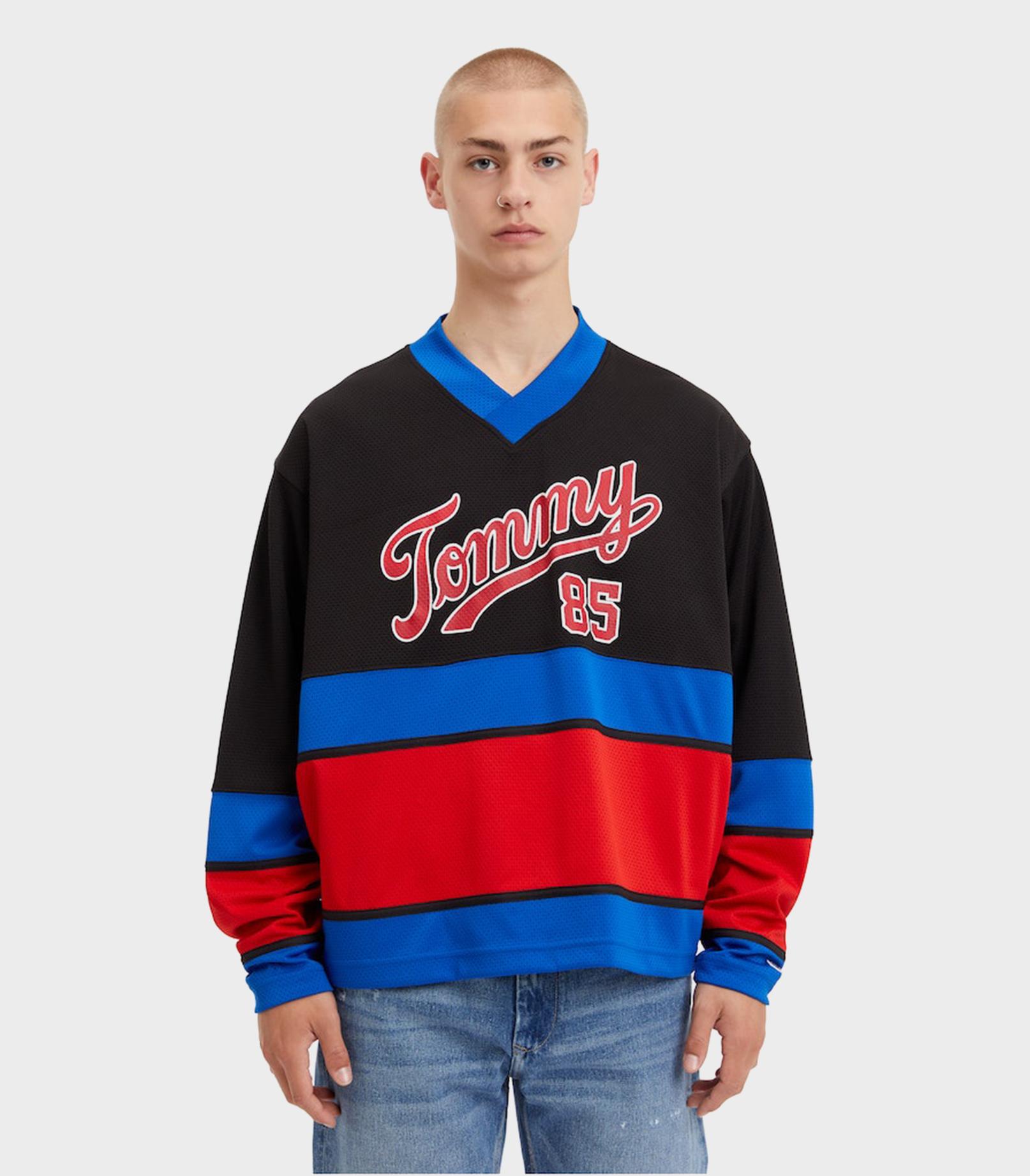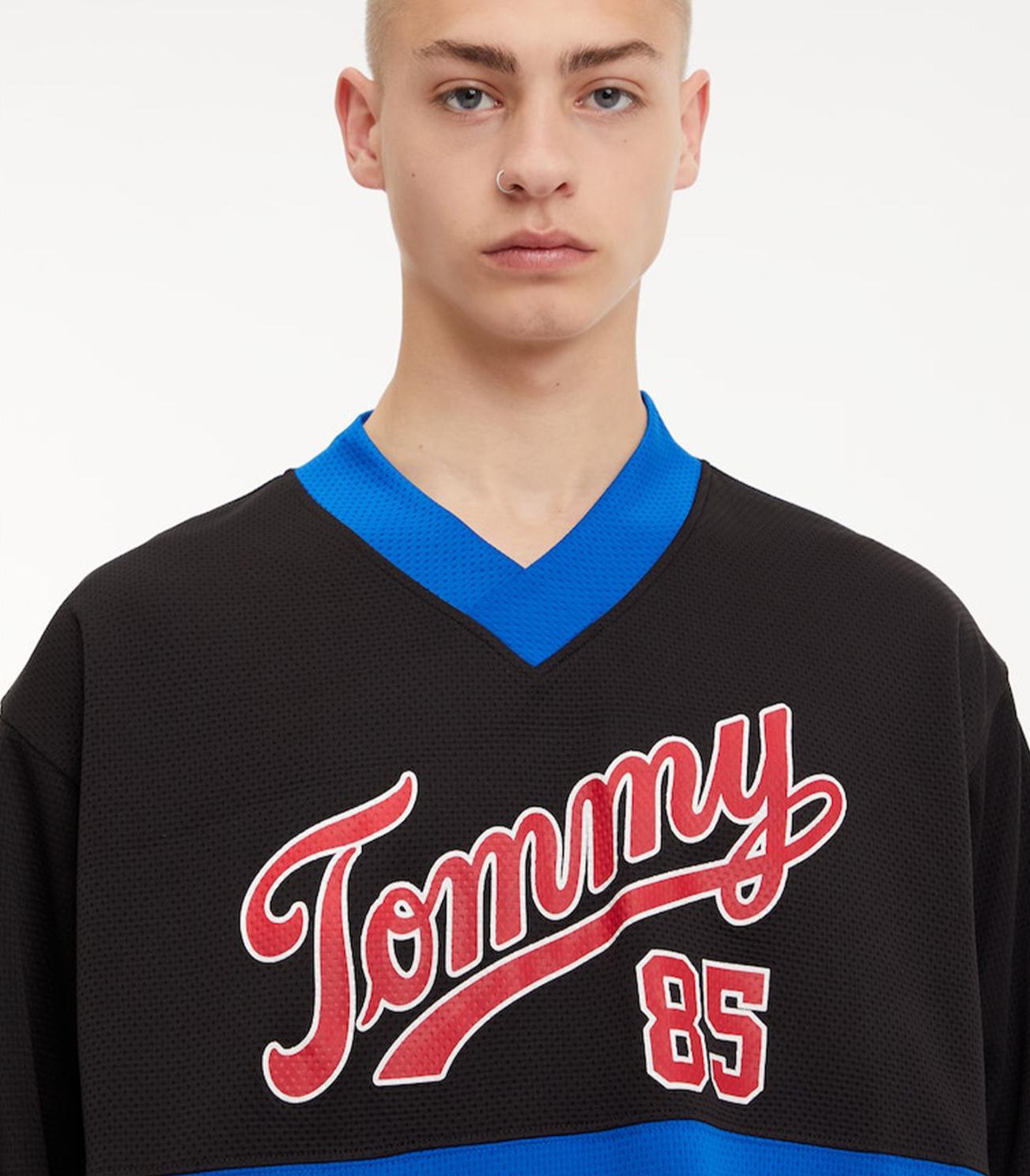 Tommy hilfiger jeans - tjm boxy college 85 vneck , m , black , style dm0dm15705