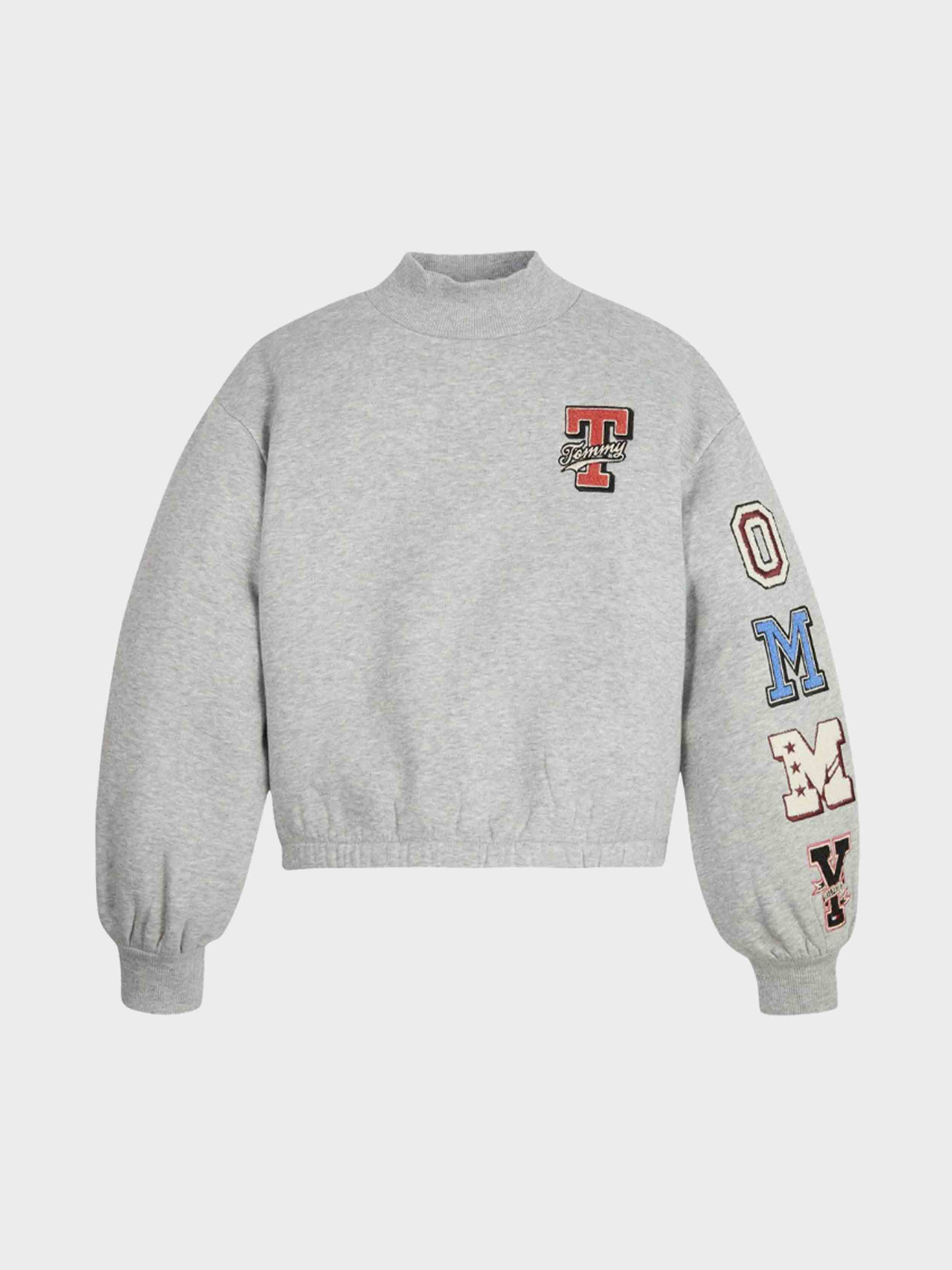 Tommy hilfiger - tommy badge mock neck , 12 , light grey heather , style kg0kg06977