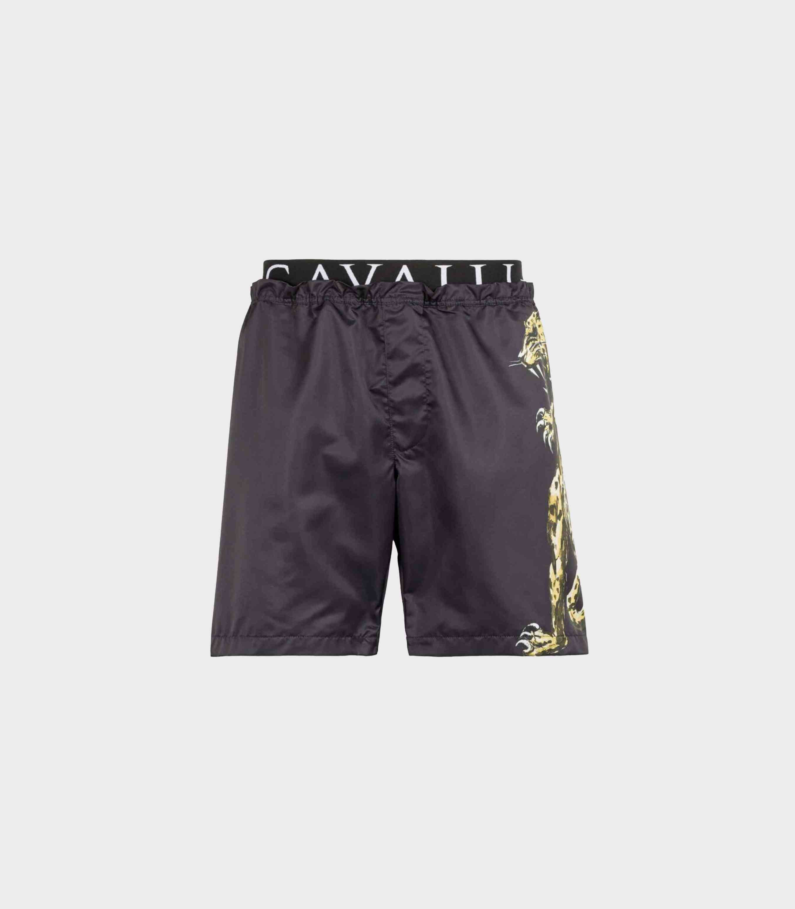 • Jaguar spots take these swim shorts into statement territory. In a nod to Cavalli's signature logomania they're topped with a monikered waistband.