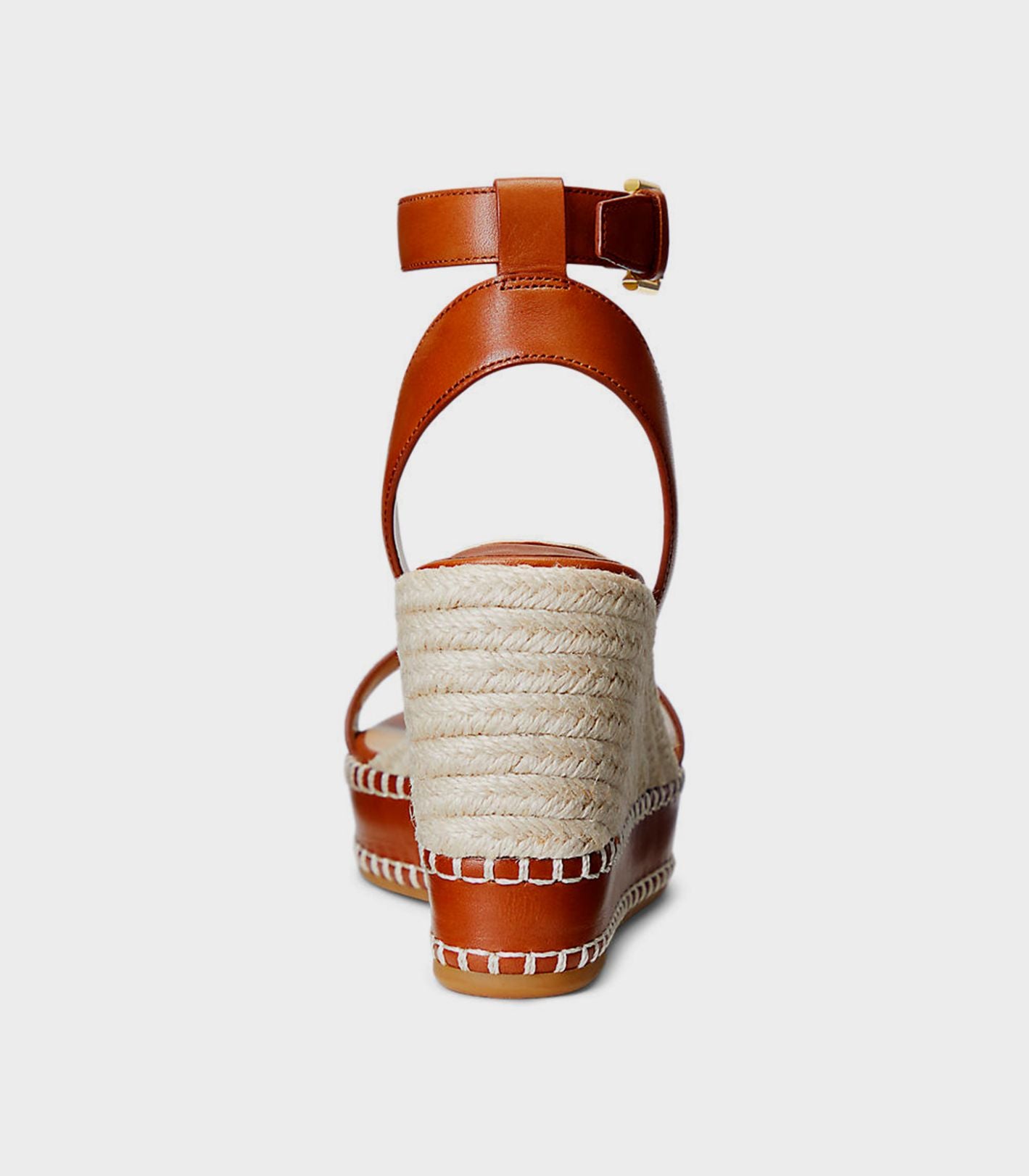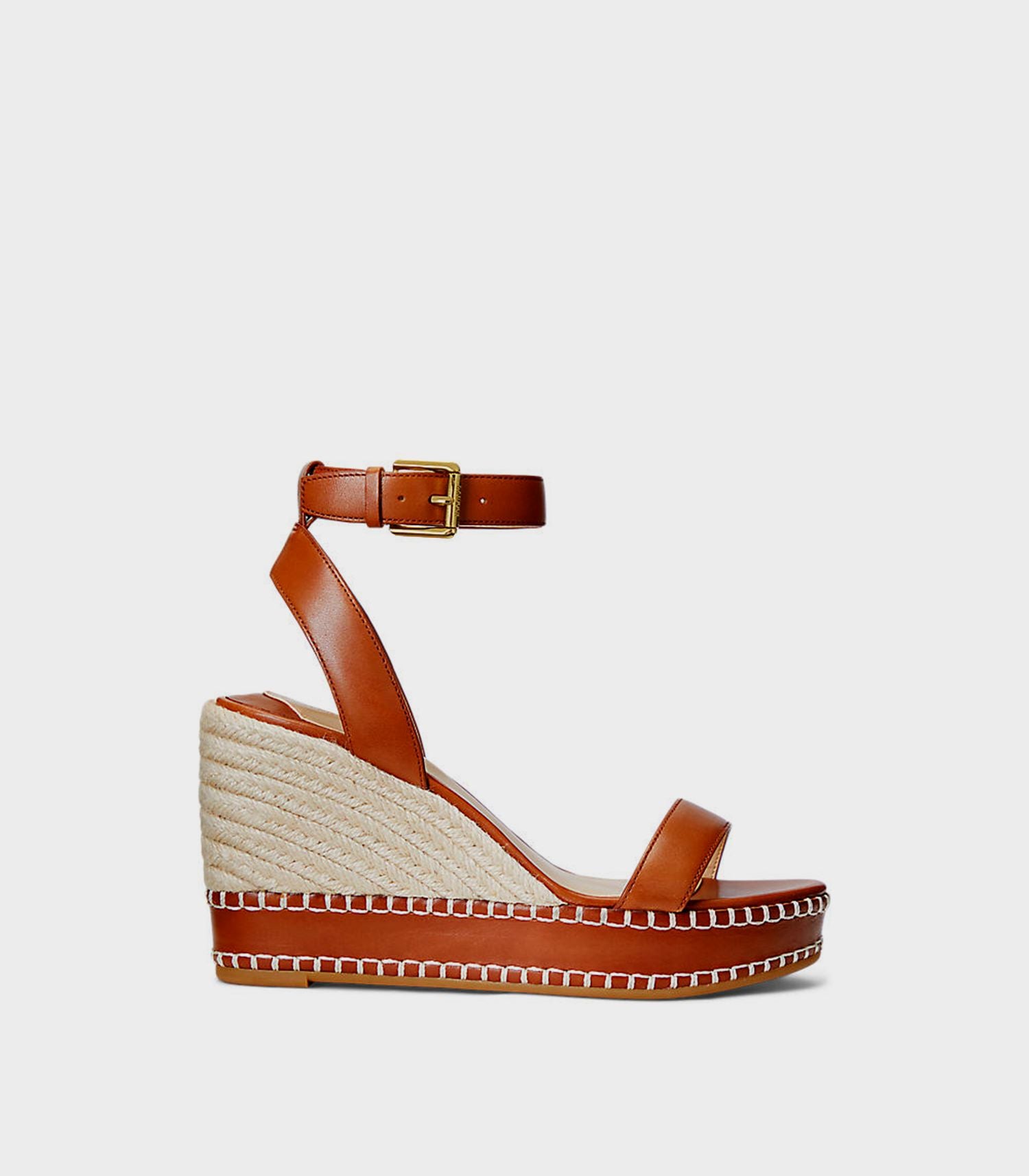 • A sumptuous leather construction offers a sophisticated take on Lauren Ralph Lauren‘s iconic espadrille. Punctuated with a signature buckled closure, its wedge silhouette creates a leg-lengthening effect.