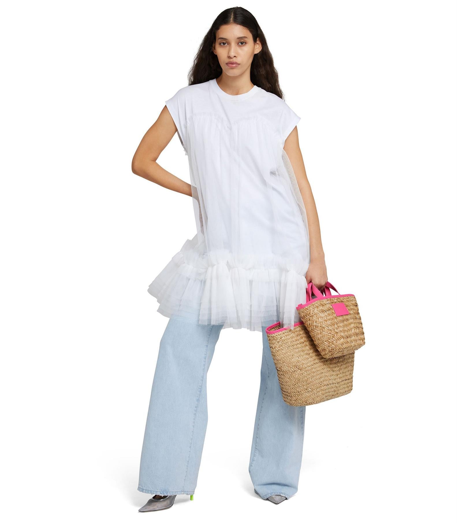 • Cotton mini dress with tulle details. Crewneck collar and short sleeves.