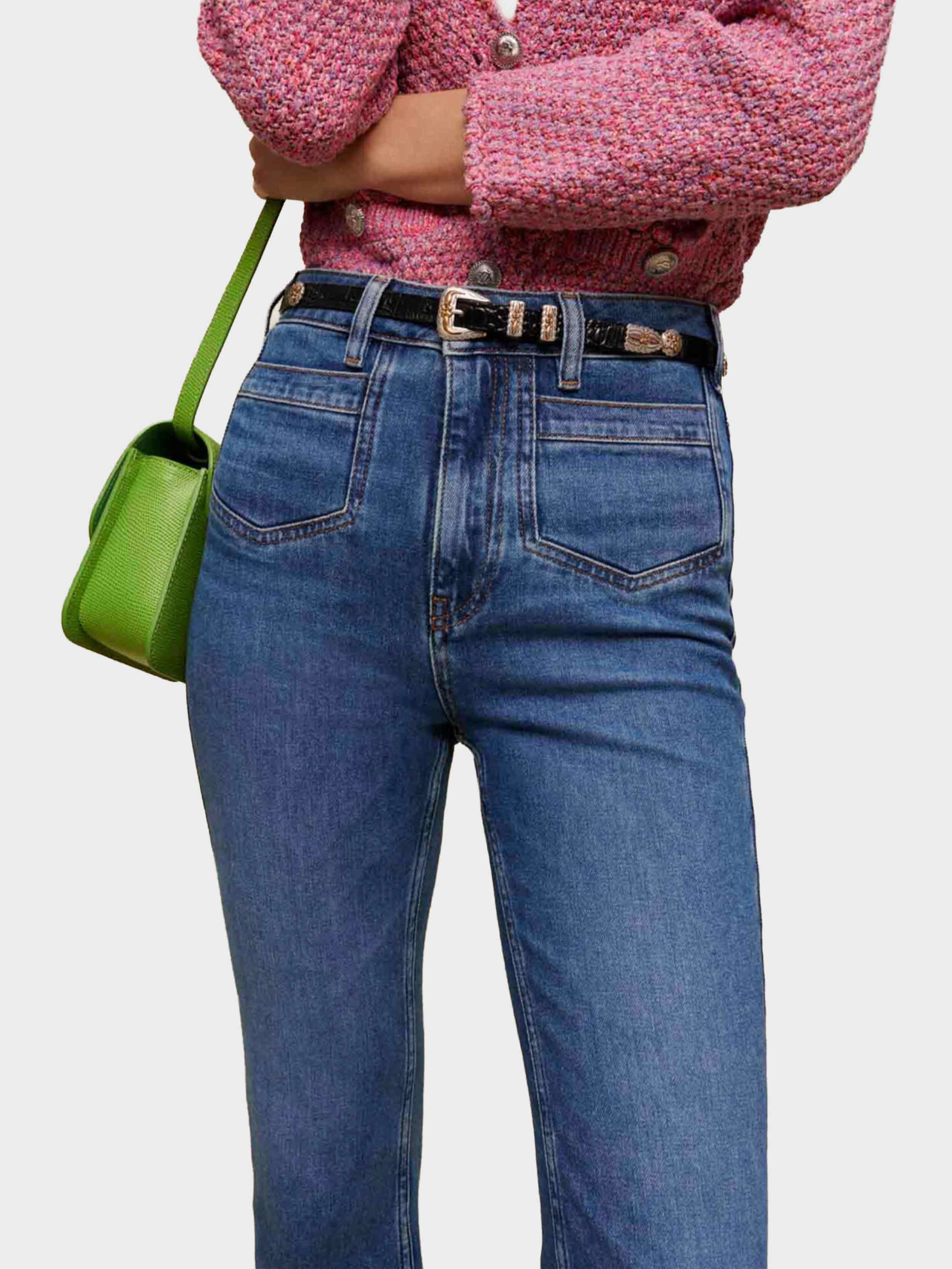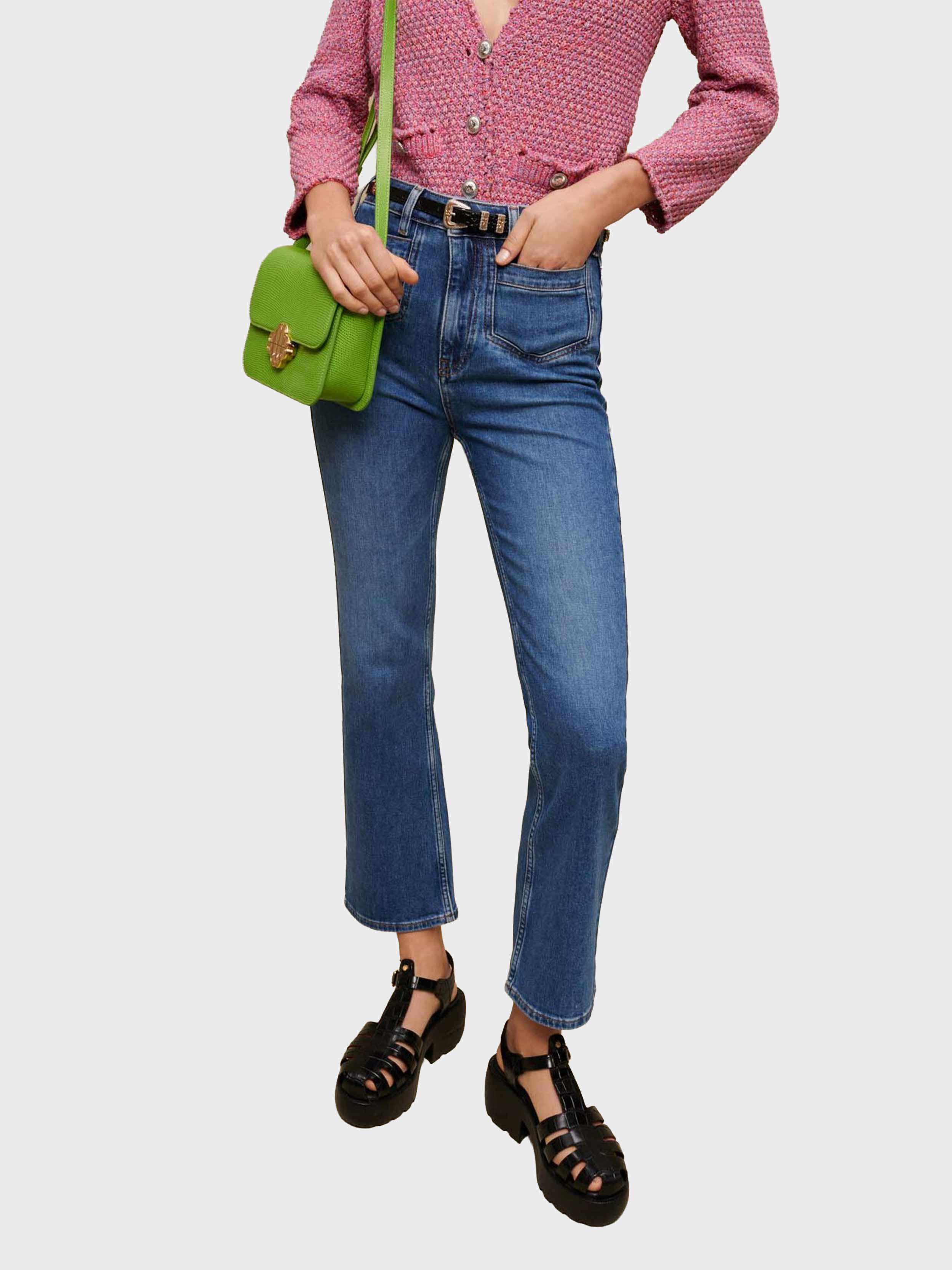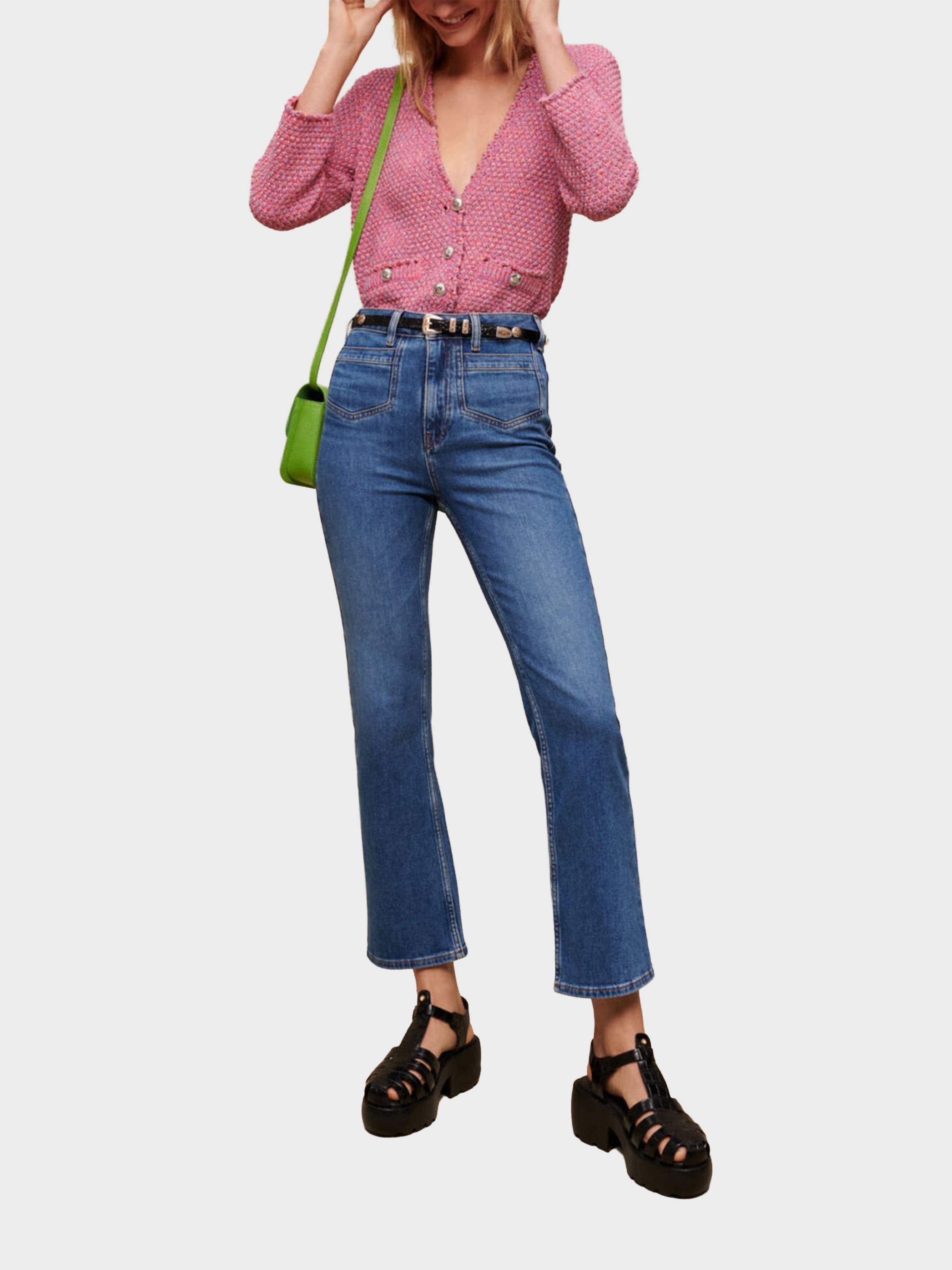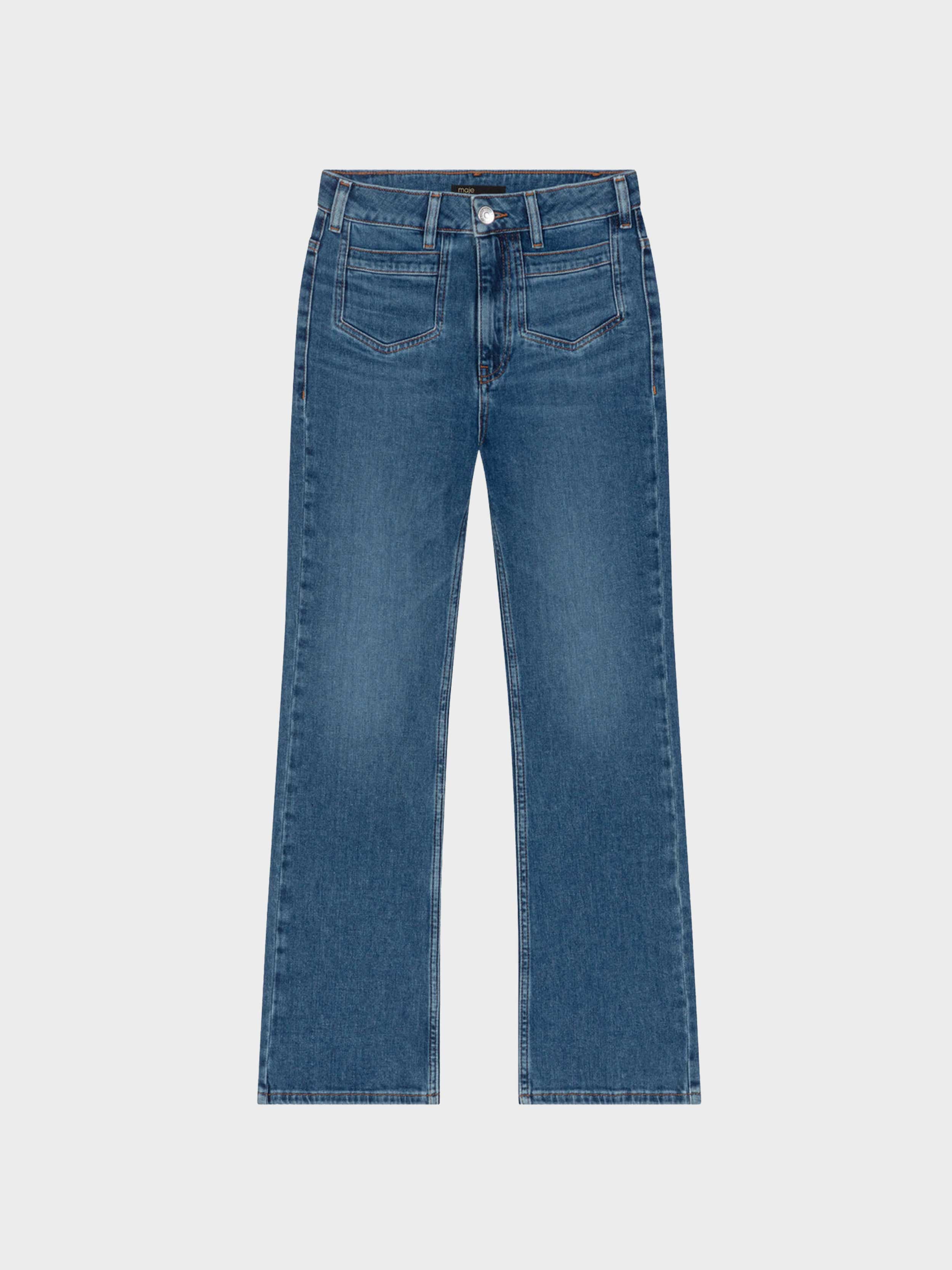 • A must-have whatever the season, these slightly faded jeans have a straight cut and a mid-rise waist. The patch pockets are pointed.