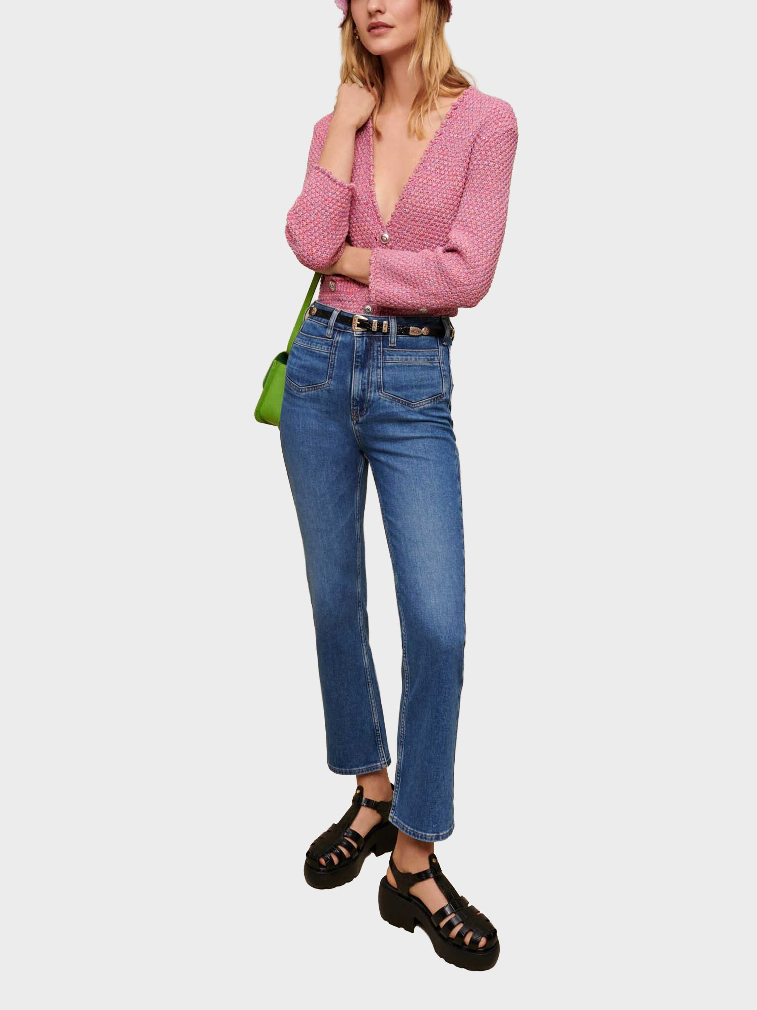 • Maje - Women's Faded Denim Straight Cut Jeans