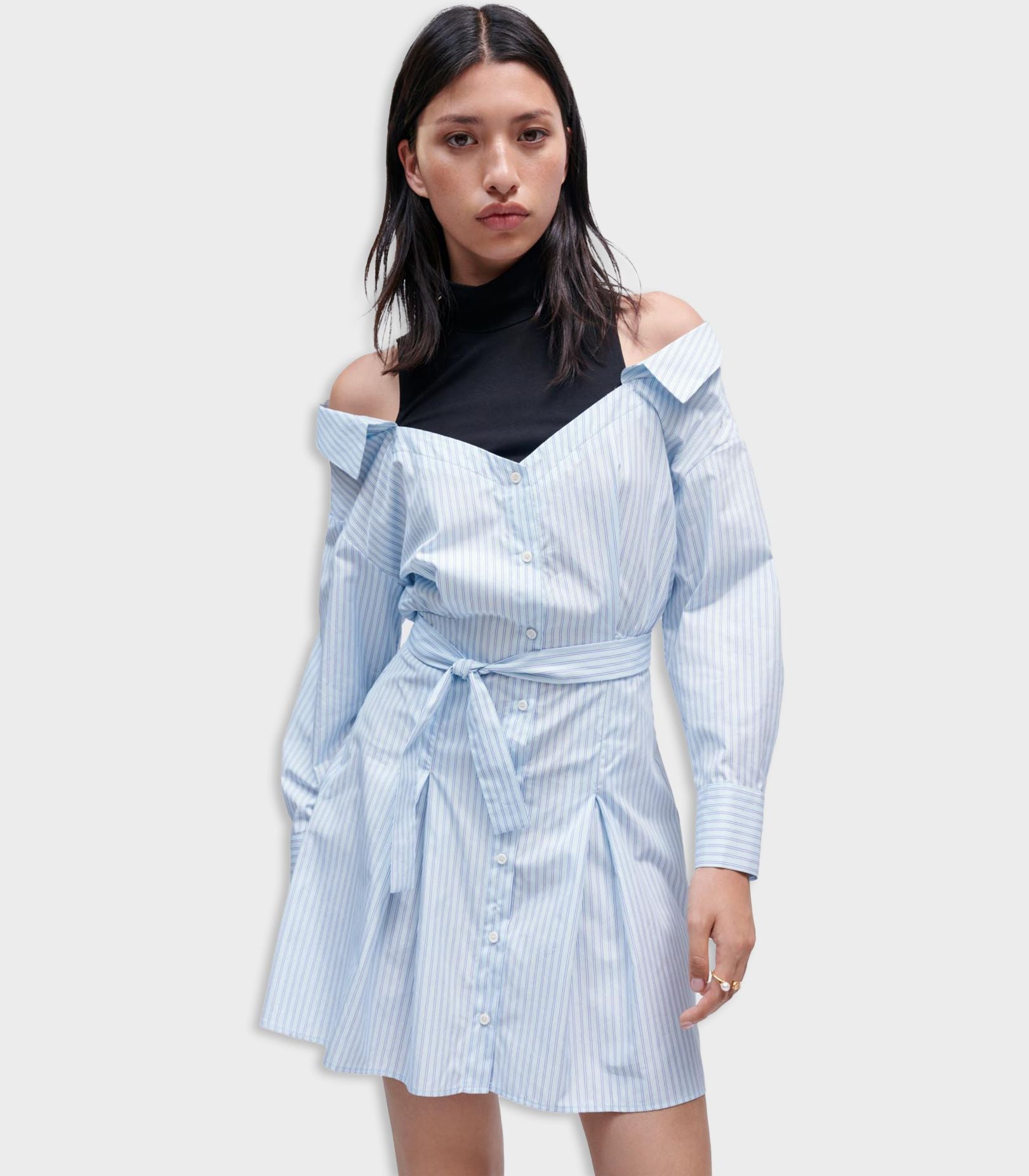 Maje - Trompe-L’Oeil Striped Shirt Dress