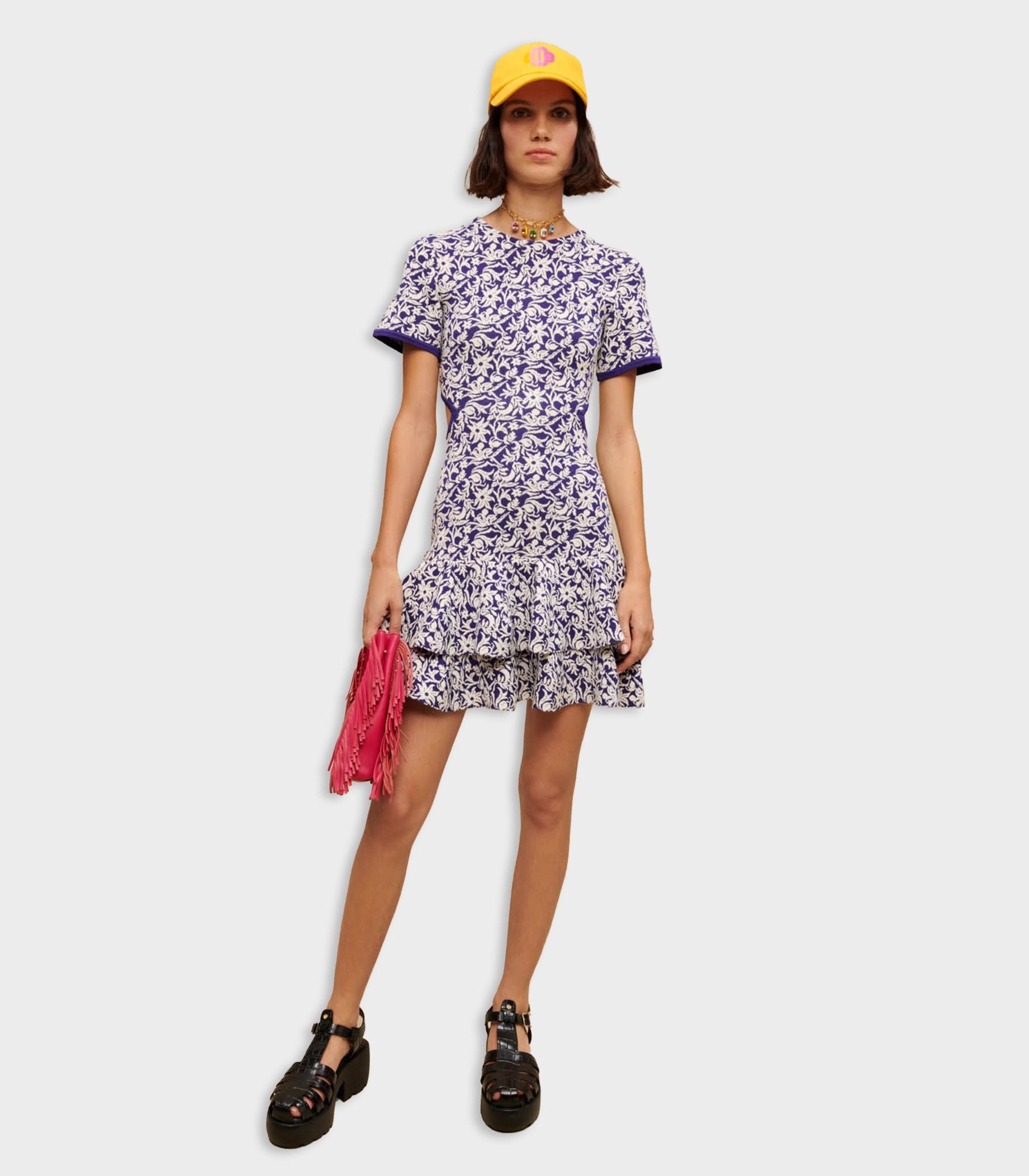 • Lightweight and flowing, this mini dress with a ruffled skirt features cut-outs on the sides. It can be paired with lug-sole sandals during the day or pulled on with heels for a dressier look.