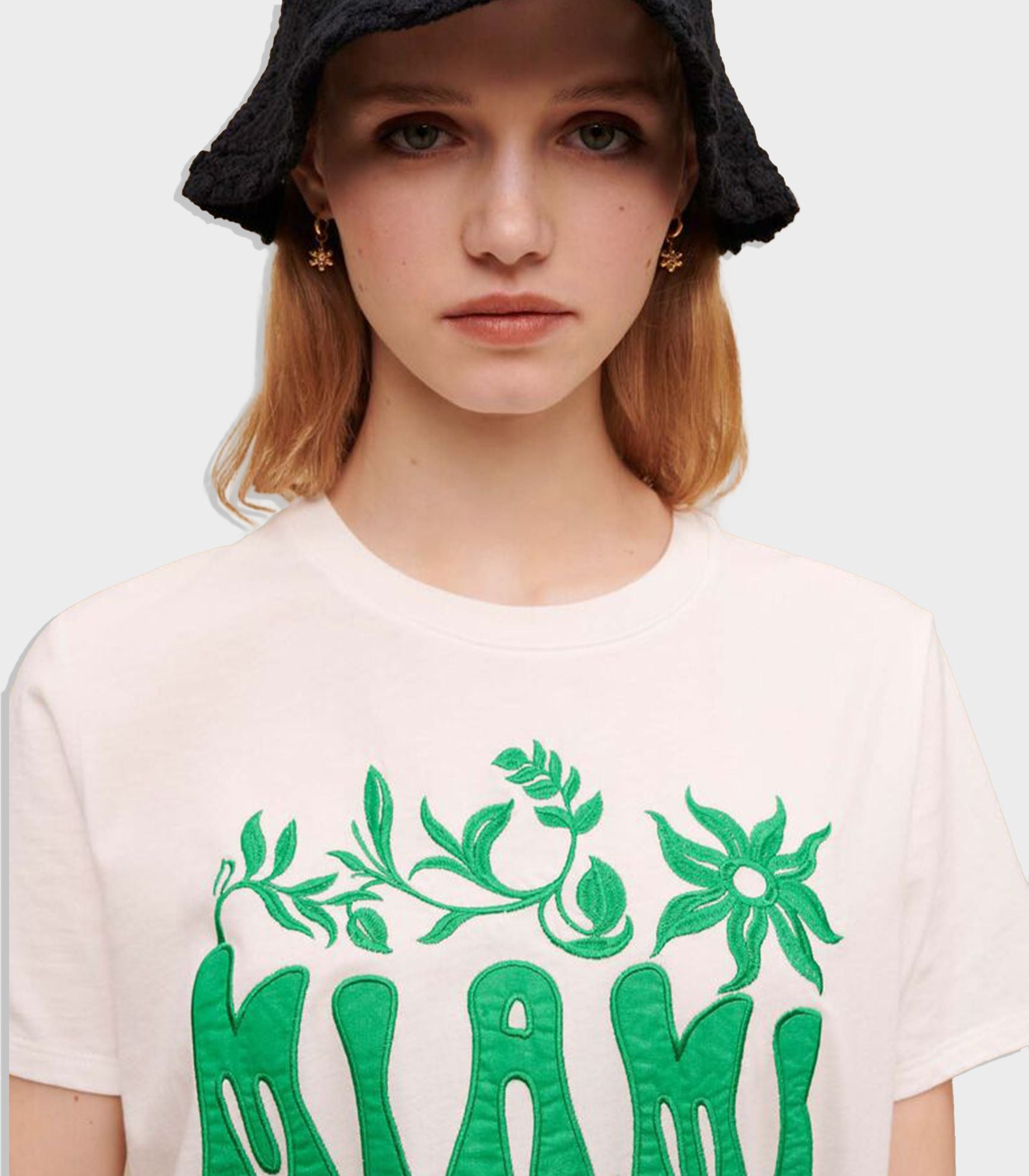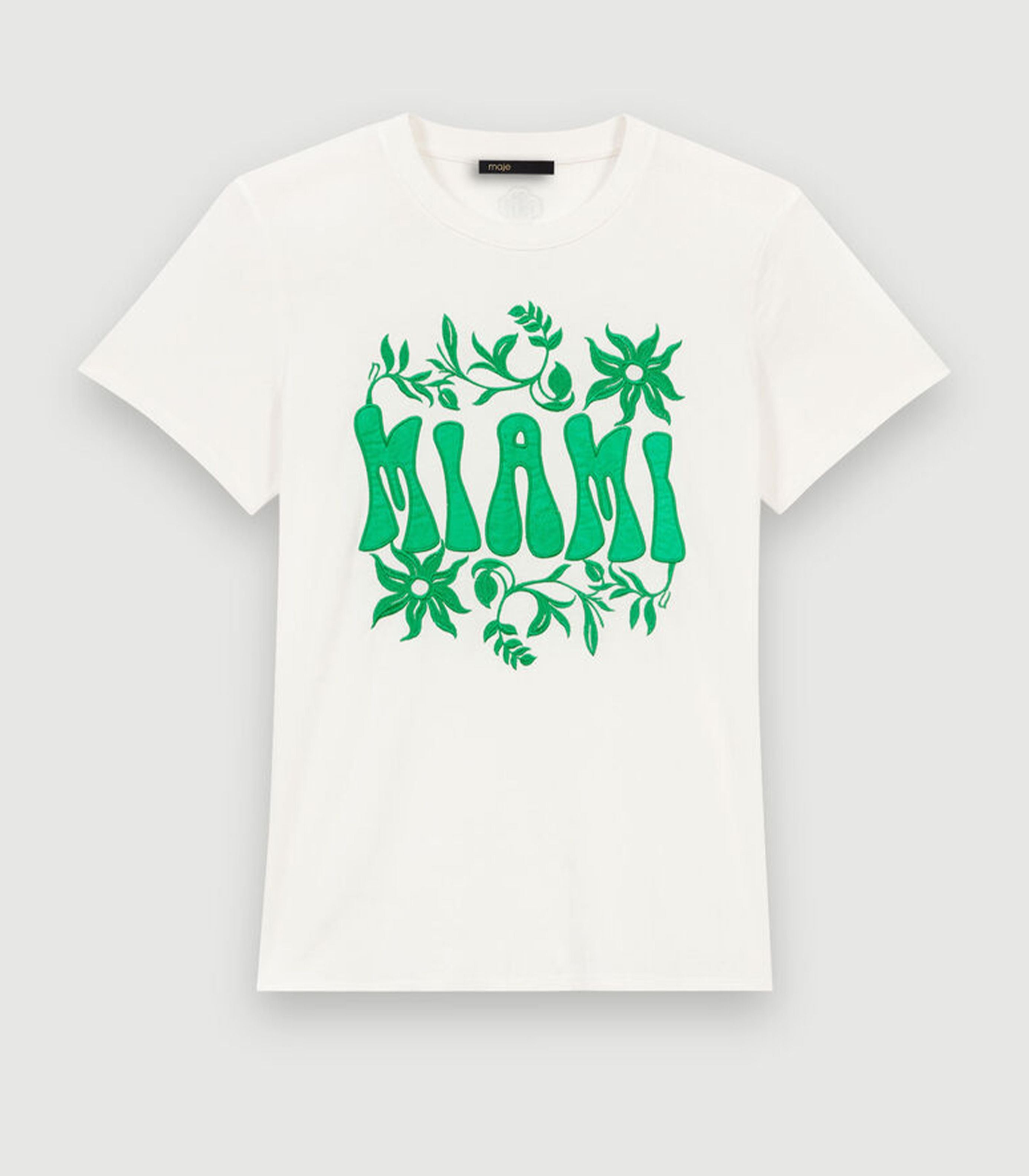 • Grab this cotton T-shirt and jet off to Miami. It features a round neckline and short sleeves and is decorated with contrasting floral embroidery.