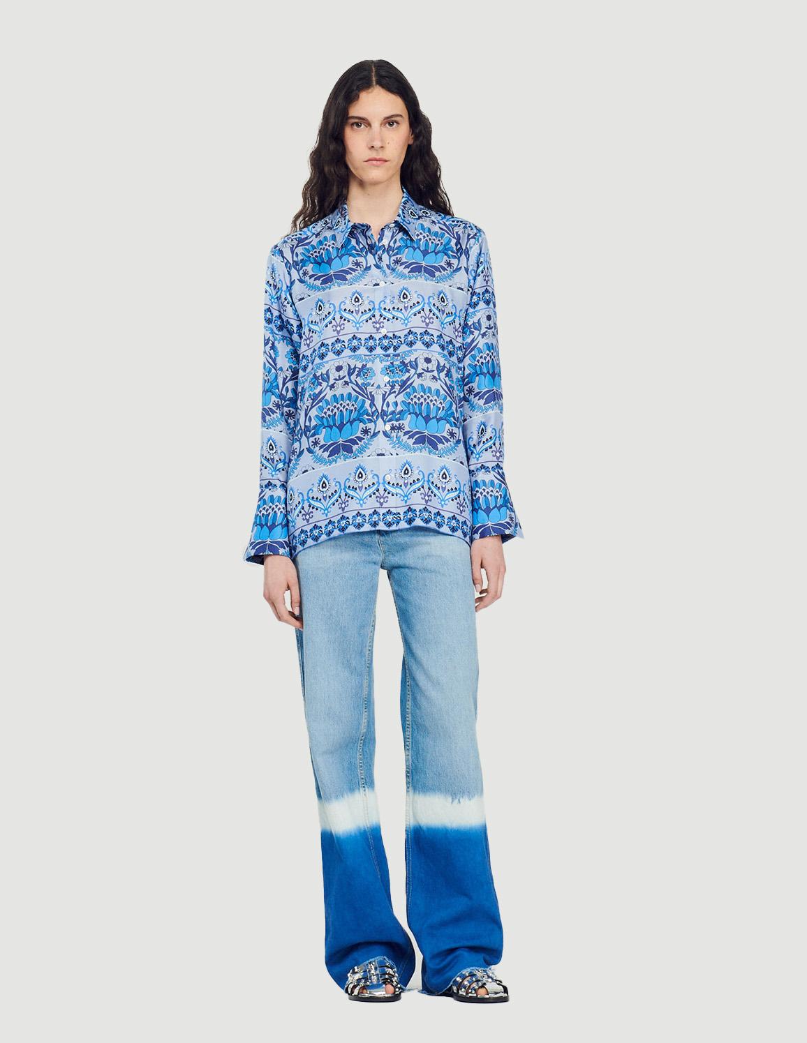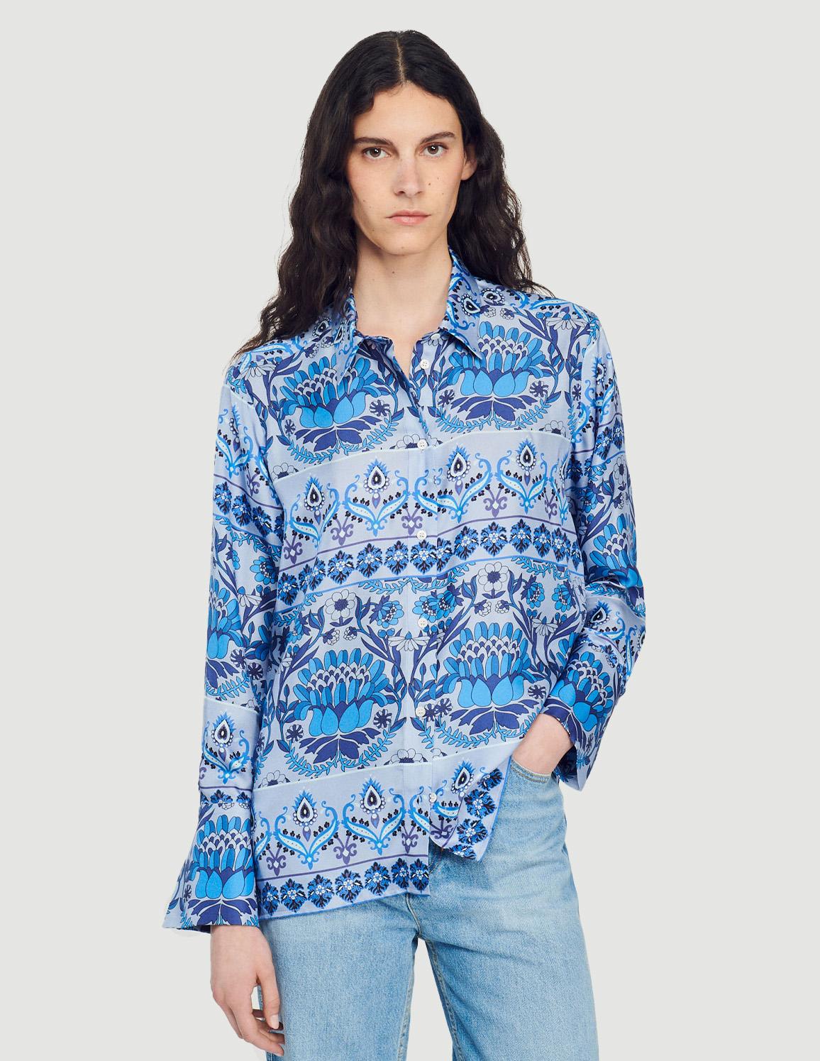 • Silk shirt decorated with scarf print, featuring long sleeves and a button fastening.