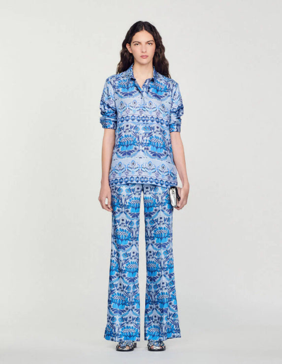SANDRO - Women's Loose-Fit Scarf Print Trousers