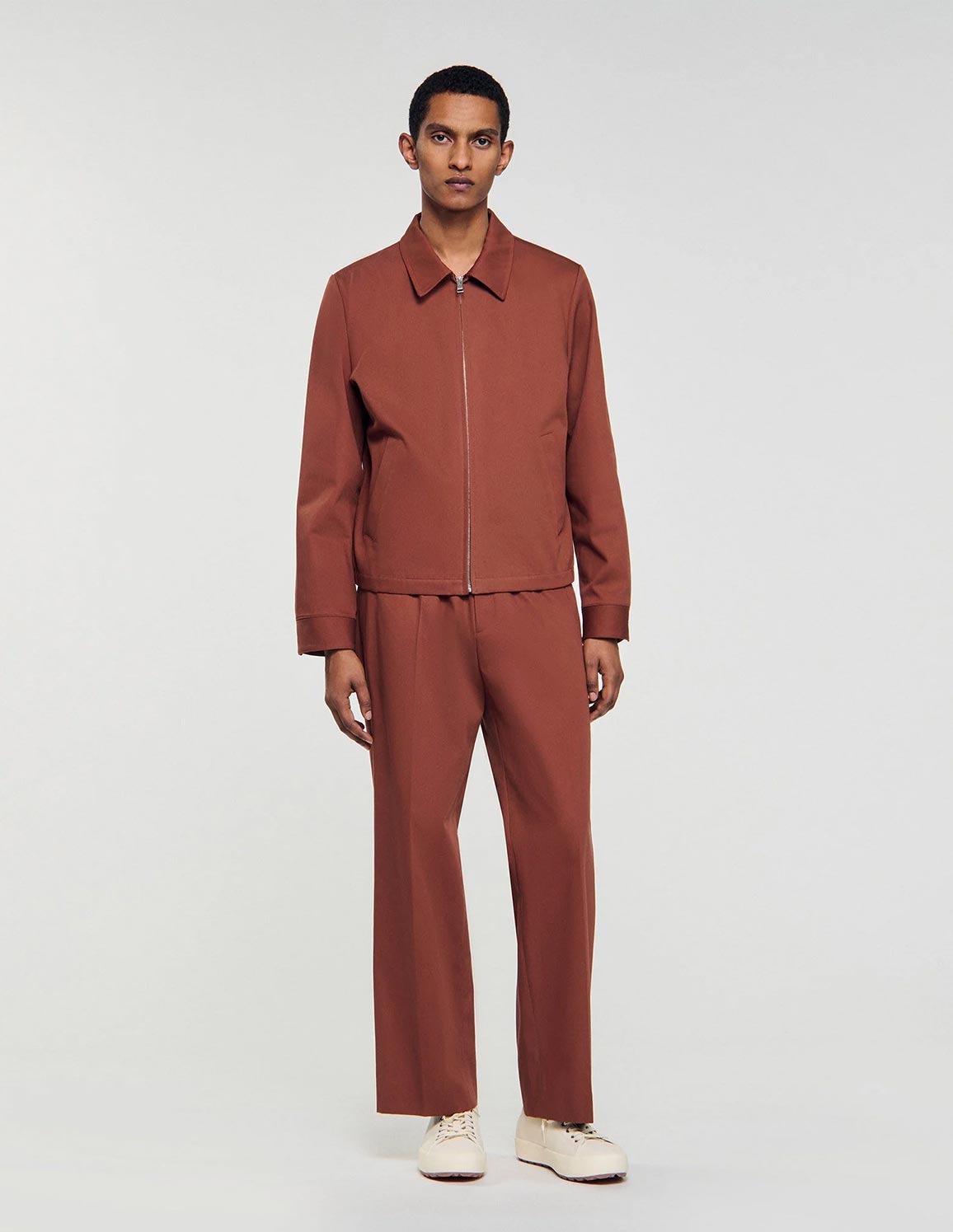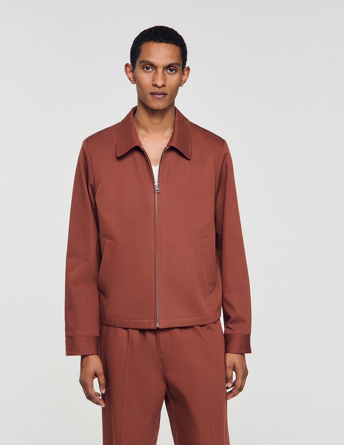 • Cotton jacket with a collar, a zip fastening, long sleeves, buttoned cuffs and piped pockets.