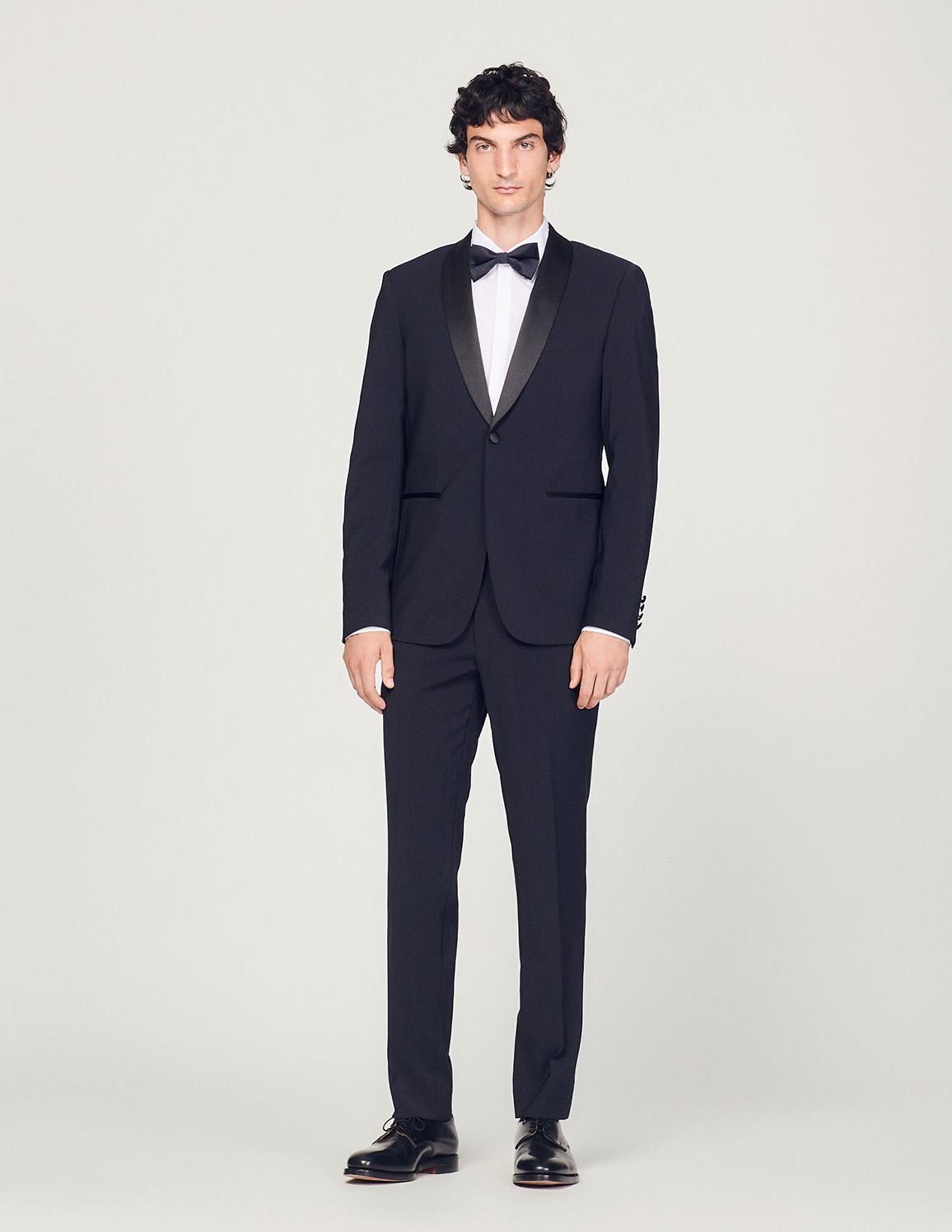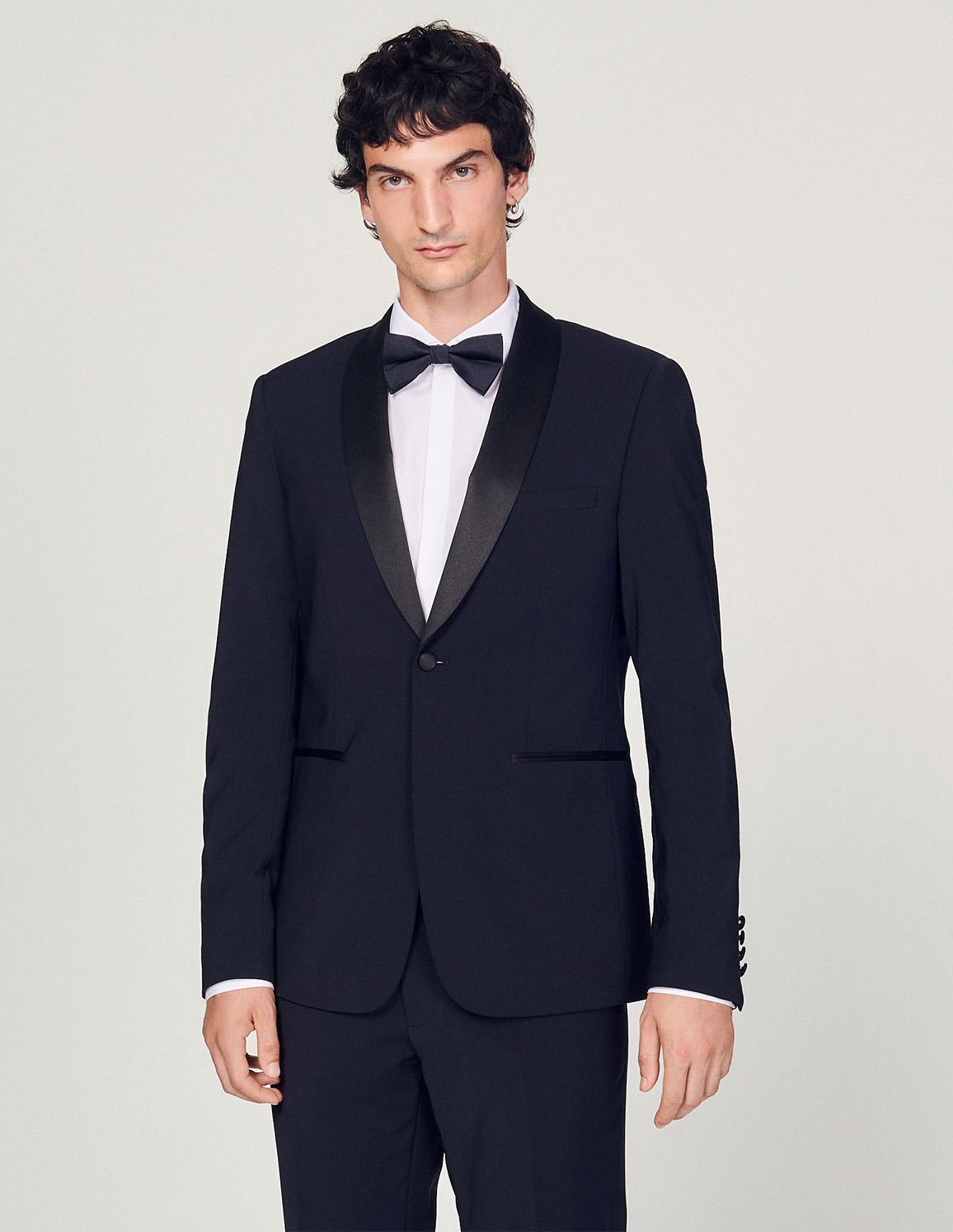 • Sandro men's jacket• Virgin wool tuxedo jacket• Satin shawl collar• Satin-covered buttons• Regular fit• This jacket matches the
