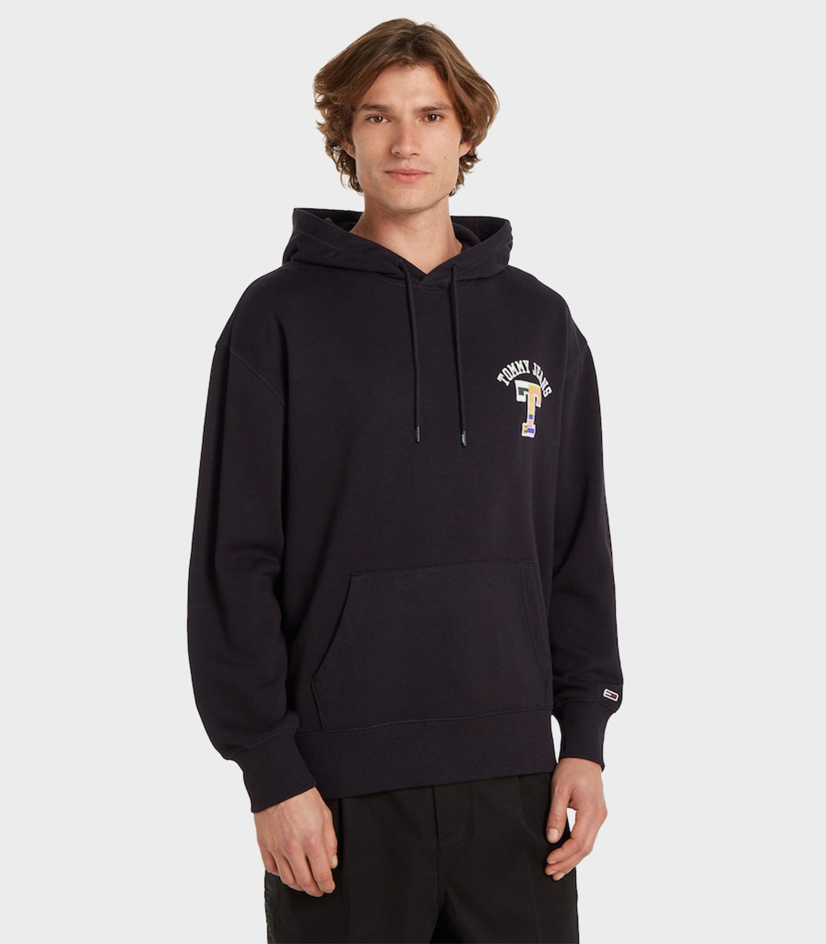 Tommy hilfiger jeans - tjm rlx luxe graphic hoodie , s , black , style dm0dm16809