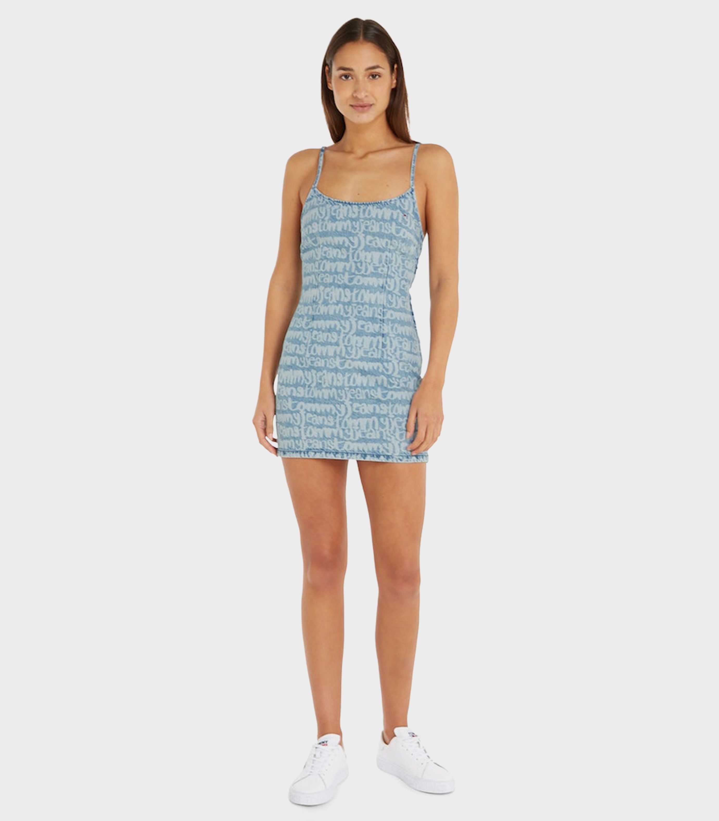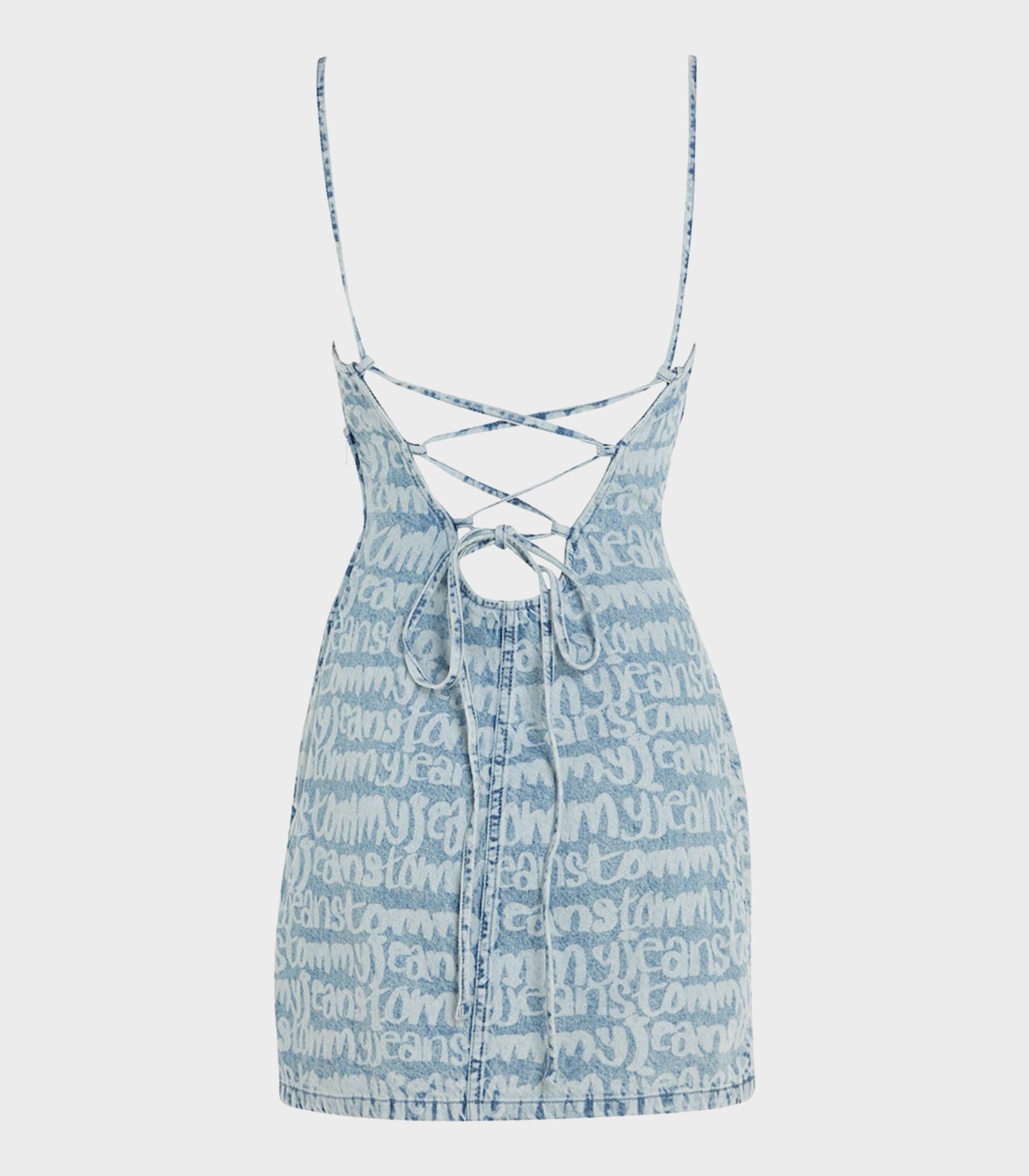 Tommy hilfiger jeans - tjw tie back tj graffiti dress , s , denim graffiti print , style dw0dw15899