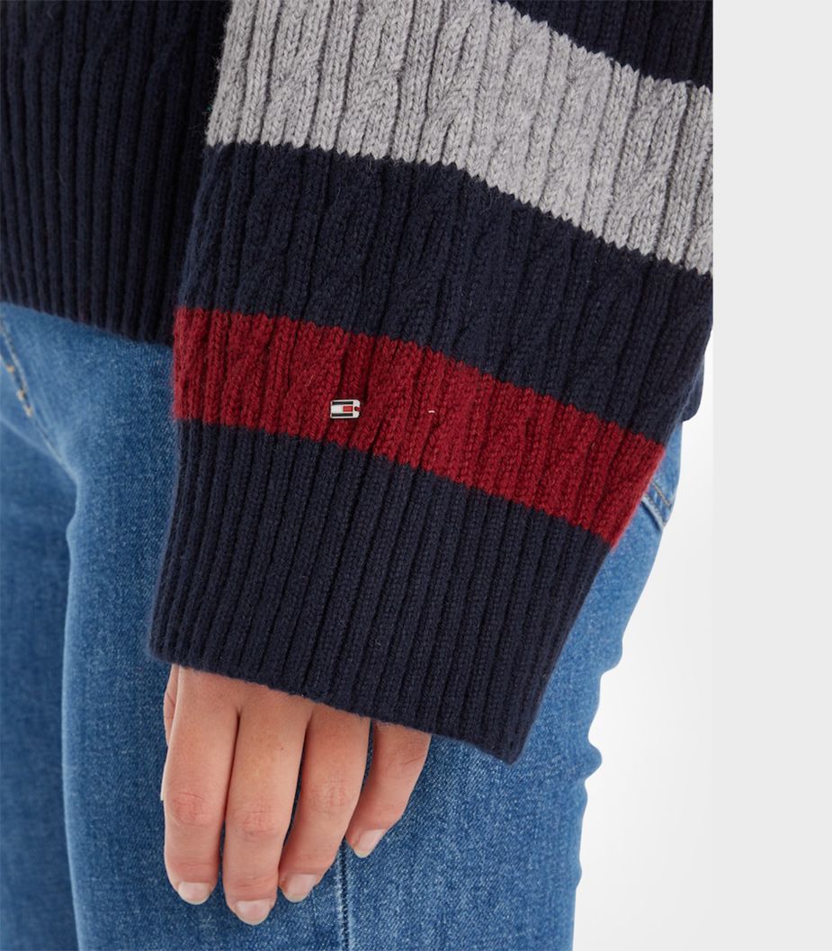 • Tommy Hilfiger - Stripe Cable Knit Crew Neck Jumper Relaxed Fit