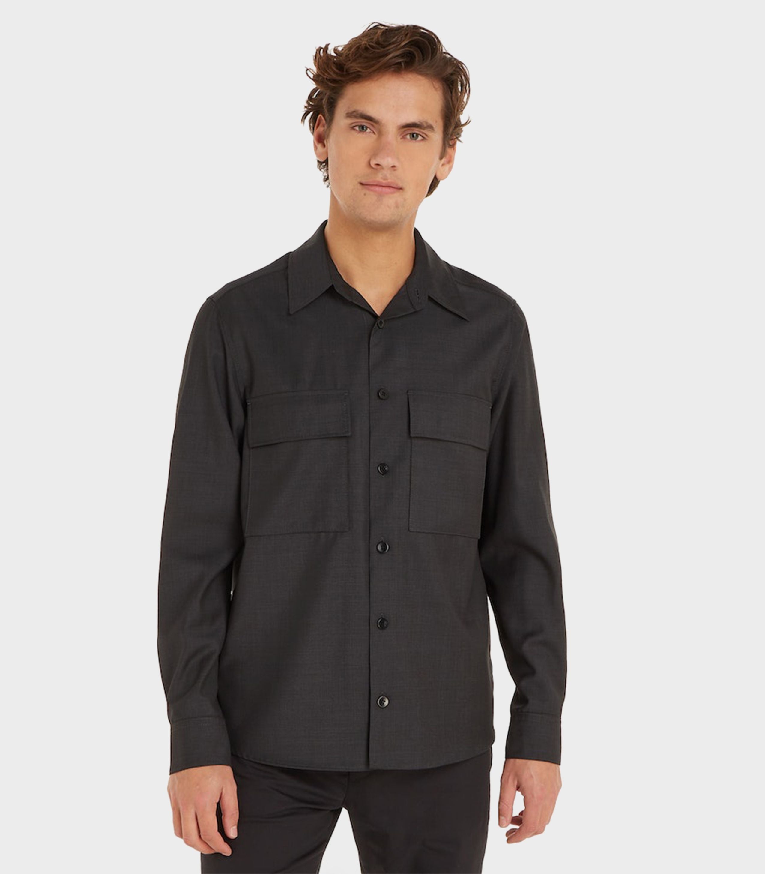 Calvin klein - super 100 broken twill overshirt , s , magnet , style k10k111656