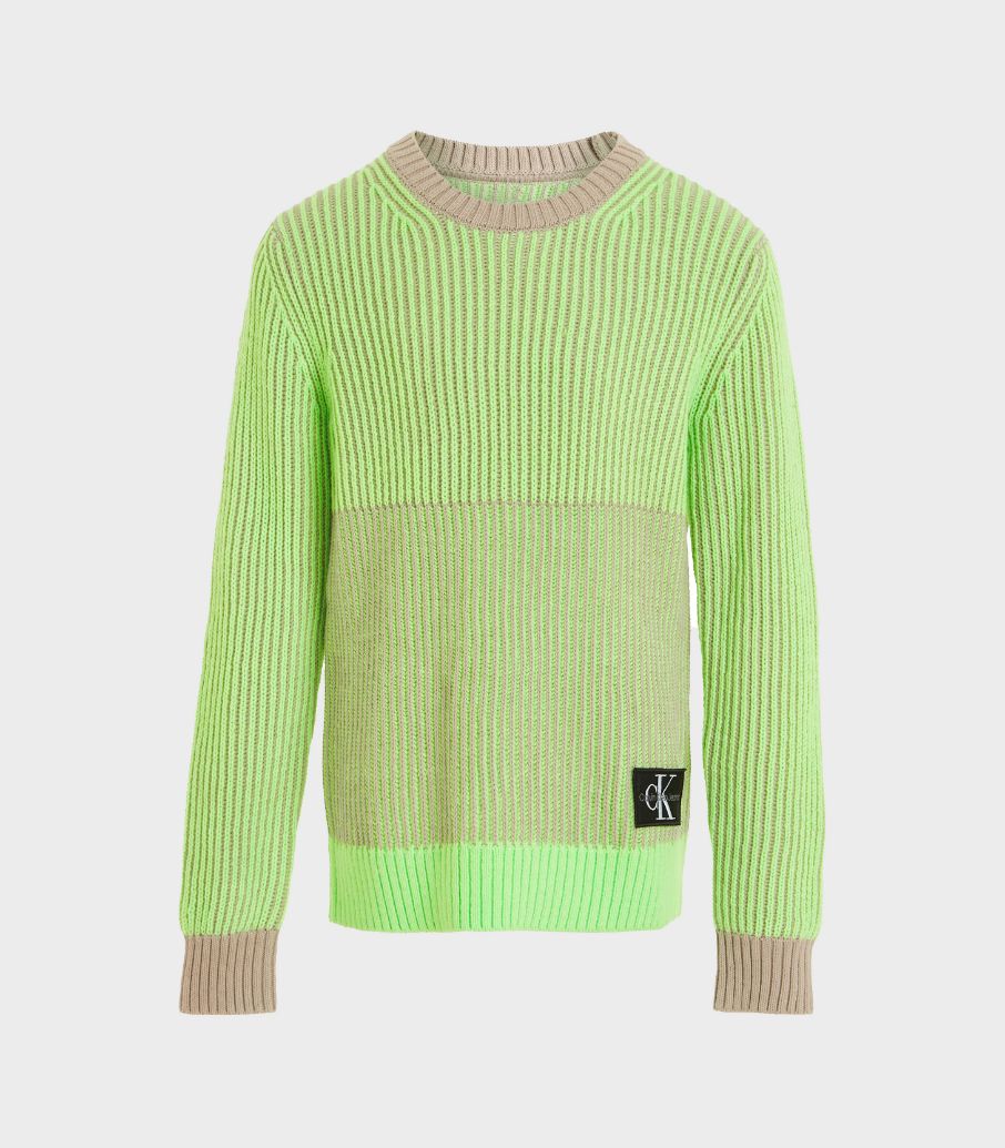 Calvin klein - color block neon sweater , 14 , plaza taupe , style ib0ib01872