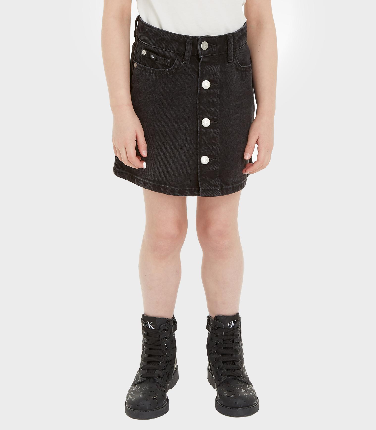 Calvin klein - washed black denim button skirt , 12 , washed black , style ig0ig02363