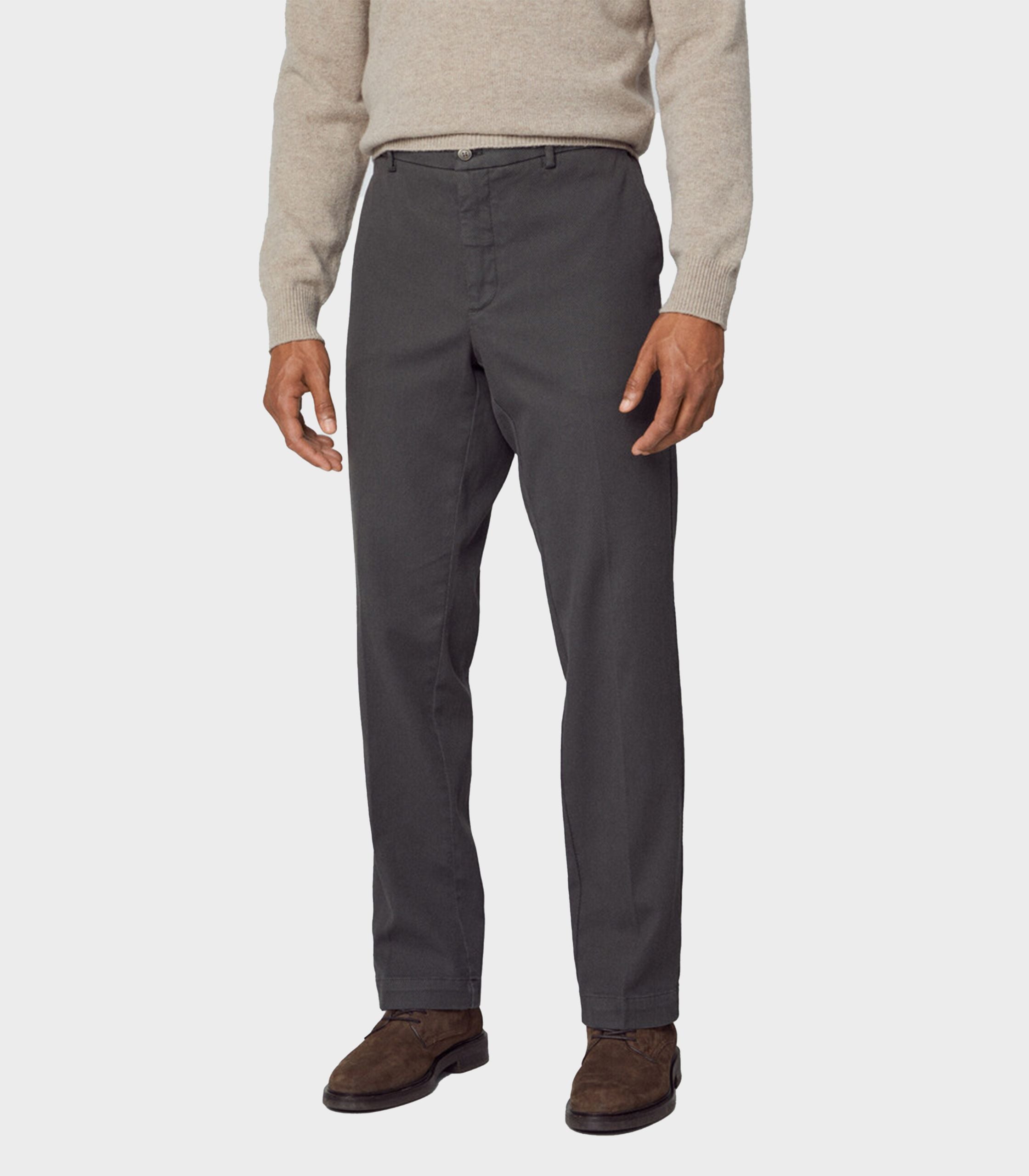 • This cavalry twill chino is piece dyed in a diagonal twill dobby. It comes in our bespoke block sanderson fit. It has side adjusters at the waist for comfort and mobility.