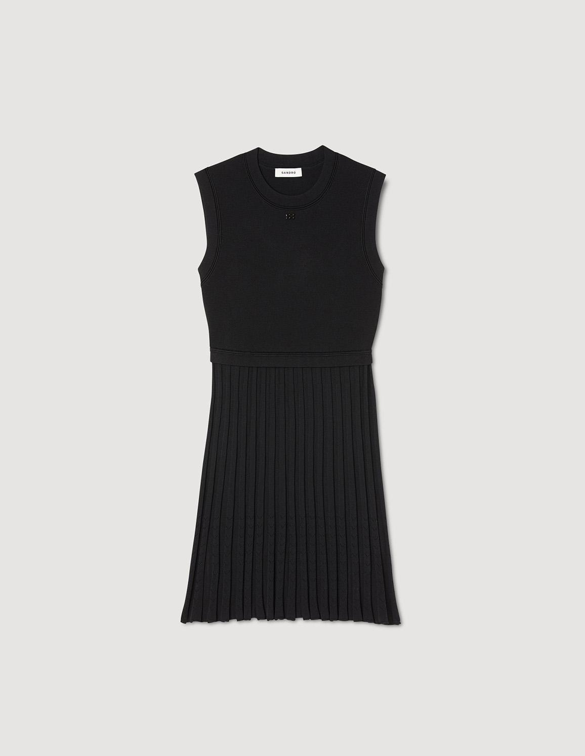 • Sleeveless 2-in-1 knit dress with a round neckline, and a pleated flared skirt.