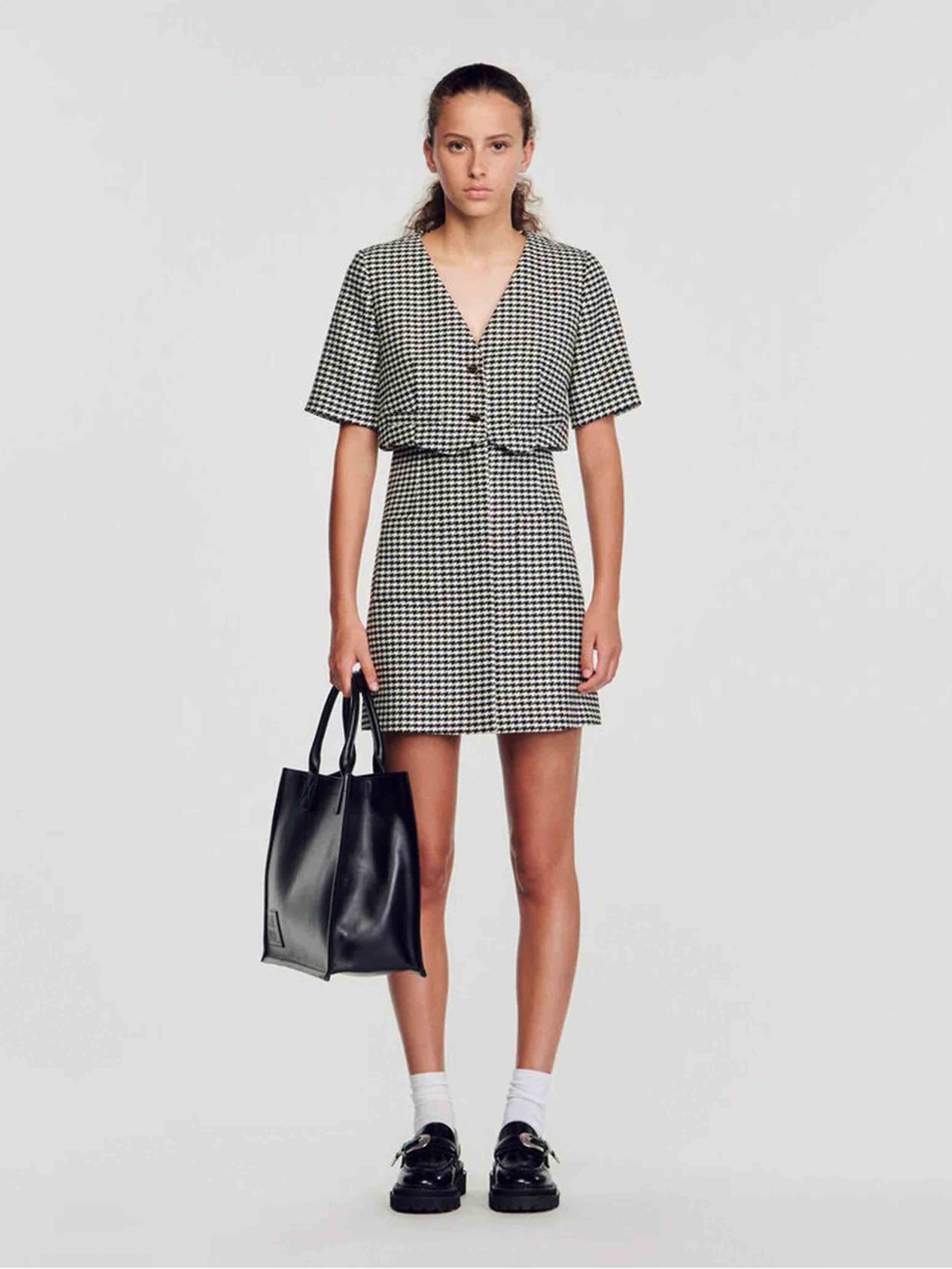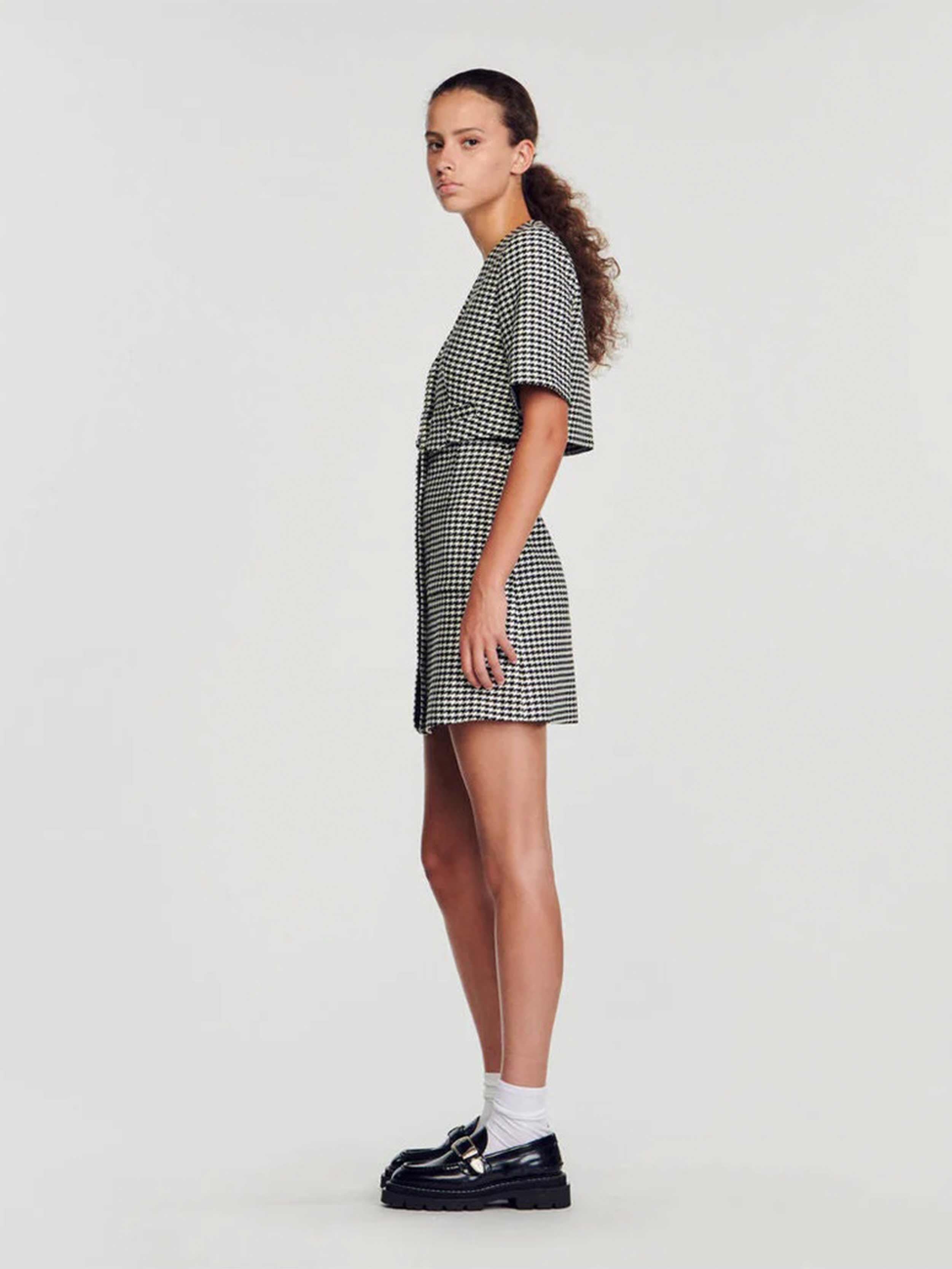 SANDRO - Women's Short Houndstooth Tweed Dress