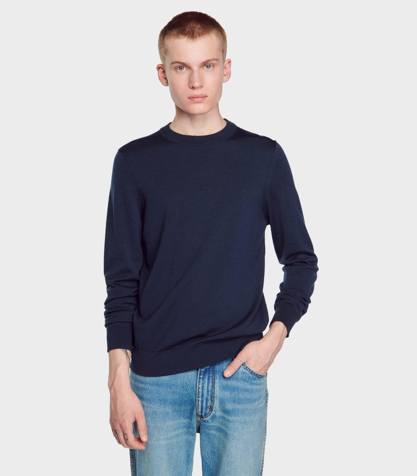 SANDRO - Men's Fine Knit Wool Sweater