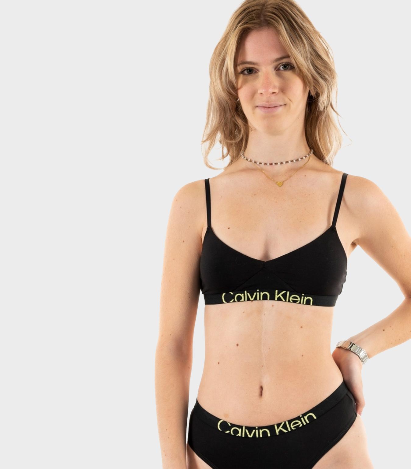 Calvin klein - unlined bralette , xs , black/sunny lime , style 000qf7398e