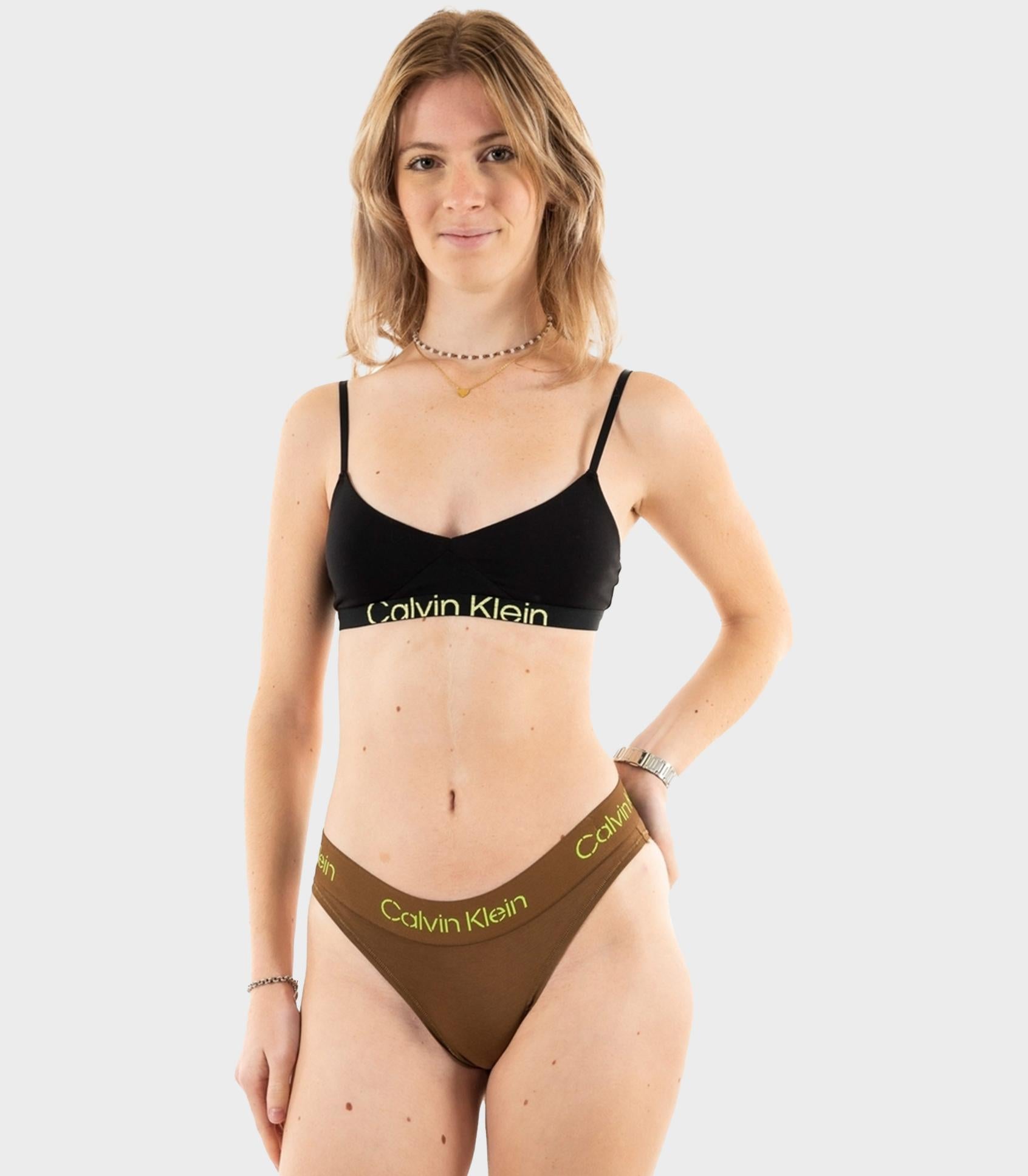 Calvin klein - bikini , xs , coffee liquer/jasmine green logo , style 000qf7459e