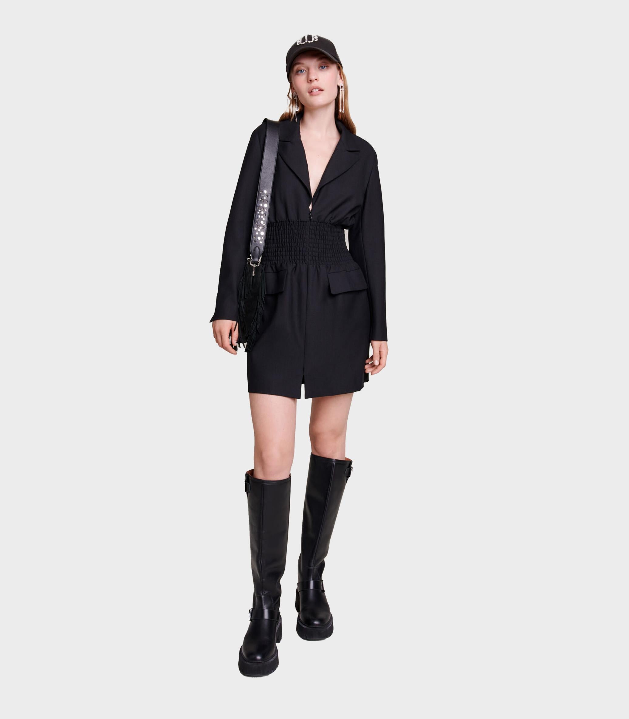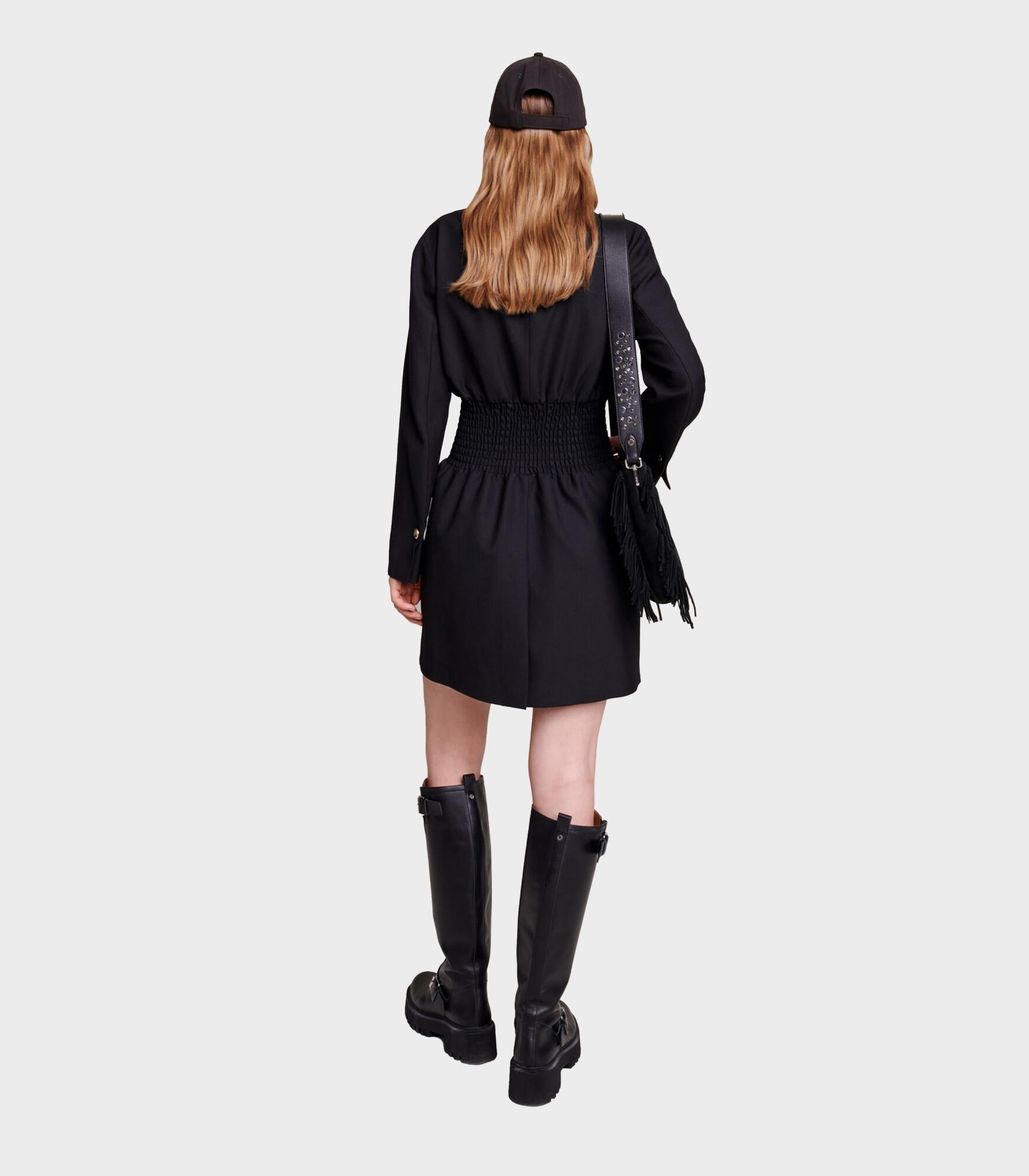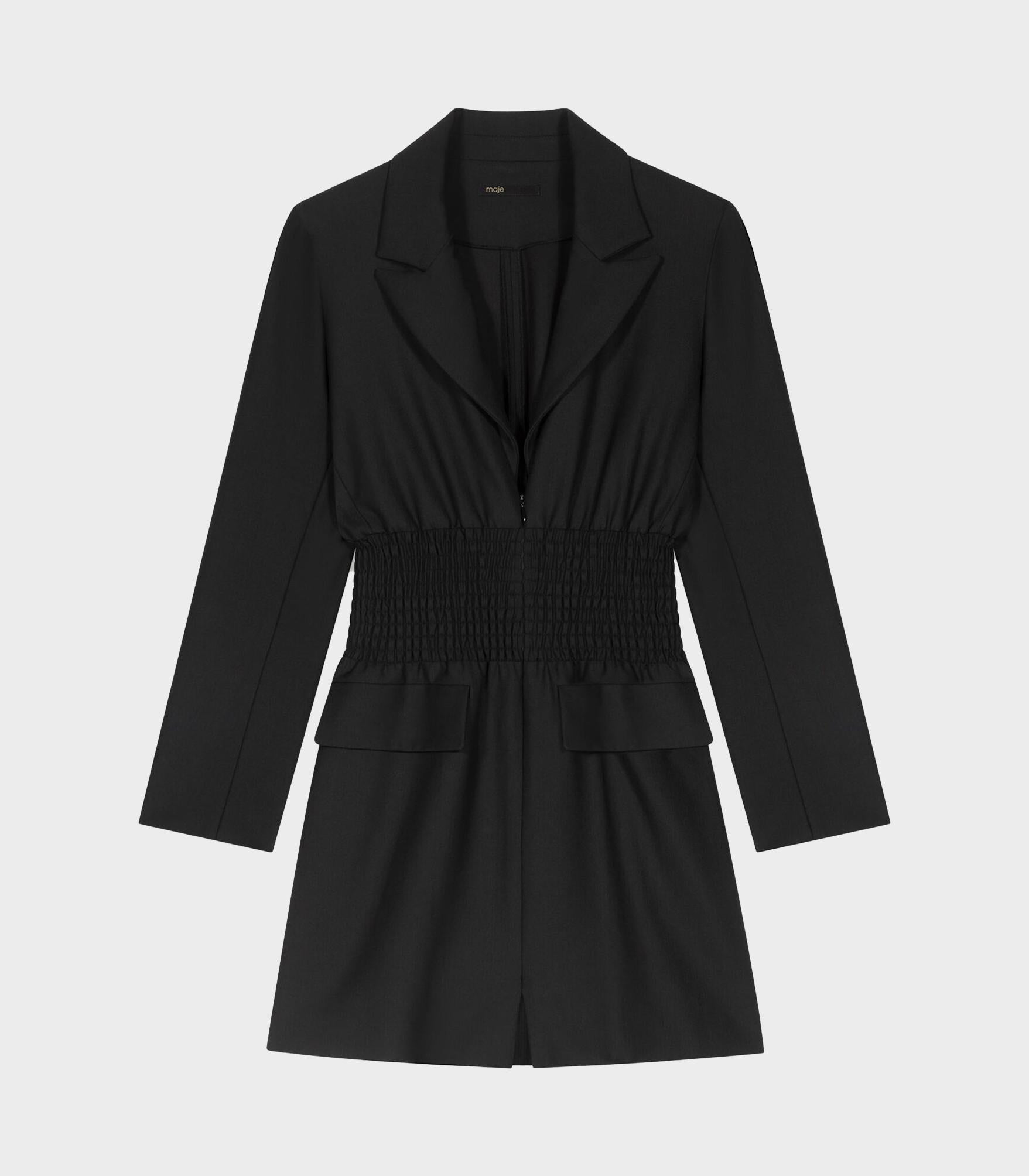 • Ideal for all occasions, this smocking-effect dress creates a bold, assertive and structured silhouette. Featuring two flap pockets and a piqué collar, it has a plunging V-neckline emphasised by a zip fastening and a subtly smocked waist. With long sleeves and two military Clover buttons, you can adjust the fit to suit you and wear it in a variety of ways.