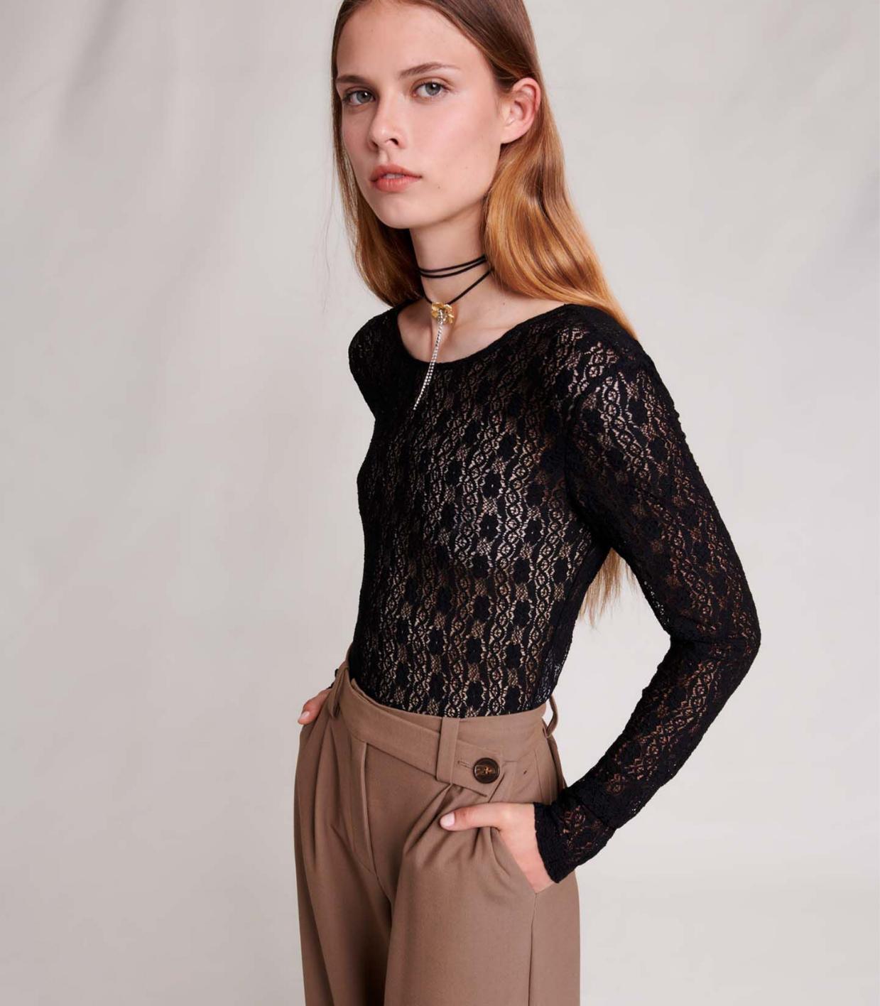 • Imbued with British elegance and the retro style of the '70s, the Maje girl plays on bold, sheer pieces for a distinctly sexy silhouette.